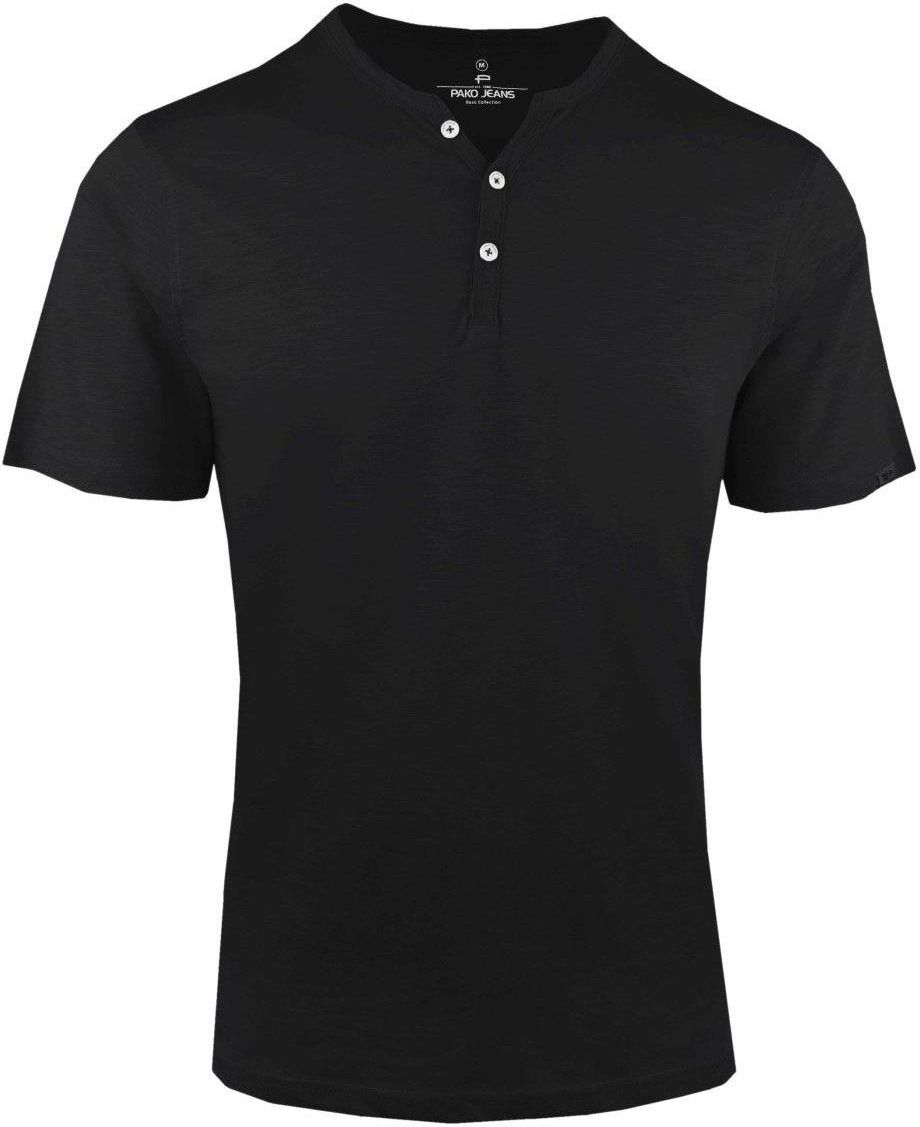 Pako Jeans T-Shirt Z Dekoltem Na Guziki Pako Lekko Melanżowa Czarna Tkanina Leżajsk