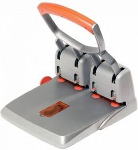 Dziurkacz Rapid HDC150/4V, srebrno-pomarańczowy to profesjonalne narzędzie do zastosowania w firmach, przeznaczony do dużego pliku kartek. Bardzo mocny, z niezawodnymi stalowymi ostrzami, które ułatwiają dziurkowanie. Dziurkacz w wersji na 4 otwory. Wyposażony w mechanizm ułatwiający ułożenie dokumentów w pozycji gwarantującej właściwy układ dziurek, funkcjonalną rączkę wytworzoną z miękkiego tworzywa. Posiada przezroczyste pojemniki na konfetti oraz części zapasowe. Rozstaw otworów: 80 mm Średnica otworu: 6 mm Wymiary: 320 x 170 x 360 mm Waga: 6.0 kg