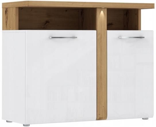 Komoda Szafka z Półkami Dąb Artisan Biały Połysk Tuluza TUZK221B-C843 Ogólnie Komoda z kolekcji TULUZA Mebel w dekorze Biały połysk i Dąb Artisan tworzy pasujący element wyposażenia salonu lub sypialni. Komoda posiada 2 otwarte półki i 4 półki skryte za frontami Maksymalne obciążenie blatu: 20kg …