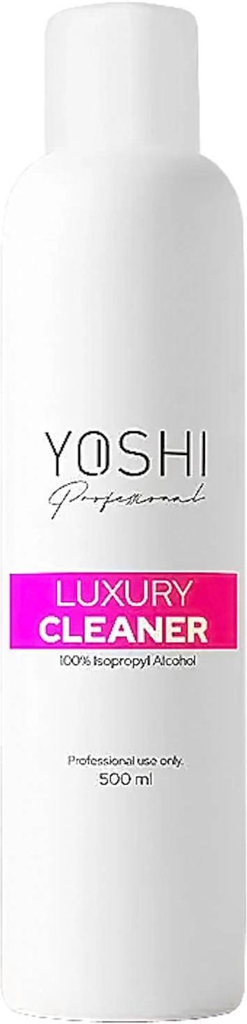 YOSHI LUXURY CLEANER 500ML Uniwersalny Odtłuszczacz Perfect Cleaner 100% Alkohol Izopropylowy Alkohol Izopropylowy Yoshi jest uniwersalnym środkiem zarówno do odtłuszczania paznokci jak również przemywania powierzchni. Możesz nim również zdezynfekować paznokcie, a także przeczyścić zabrudzone powierzchnie blatów lub podkładek, co jest niezwykle istotne ze względów higienicznych. Dzięki temu, że w składzie produkt zawiera 99% alkoholu izopropylowego, cechuje go bardzo wysoka skuteczność. Zalety: Skutecznie wytrąca wilgoć z płytki paznokcia. Uniwersalność zastosowania – przemywanie, odtłuszczanie i dezynfekcja paznokci oraz powierzchni. Nie pozostawia smug i szybko odparowuje z czyszczonych powierzchni. Wysoka wydajność. Brak nieprzyjemnego zapachu.