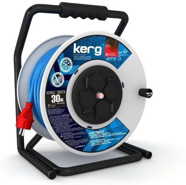Przedłużacz bębnowy KERG z 4 gniazdami z uziemieniem, o długości 30 metrów, jest niezawodnym narzędziem do zasilania w różnych warunkach pracy. Oto główne cechy i informacje na temat tego produktu: Materiały wysokiej jakości: Przewód wykonany jest z opone poliuretanowej typu TMPU, co czyni go odpornym na działanie czynników zewnętrznych. Izolacja żyły wykonana jest z gumy EPR, co dodatkowo zwiększa trwałość i odporność na uszkodzenia. Odporność mechaniczna: Przewód charakteryzuje się bardzo dużą odpornością mechaniczną na ścieranie, zginanie oraz odkształcenia, co sprawia, że nadaje się do użytku w warunkach wymagających. Odporność na substancje chemiczne: Jest odporny na oleje, paliwa, rozpuszczalniki, ścieki, tlen, ozon oraz wodę, co czyni go idealnym do zastosowań w różnych branżach. Zakres temperatur: Przewód może pracować w temperaturach od -40˚C do +90˚C, co czyni go elastycznym i funkcjonalnym w różnorodnych warunkach atmosferycznych. Zastosowanie: Idealny do profesjonalnego stosowania w różnych branżach i środowiskach specjalnych, takich jak chłodnie, stocznie, warsztaty, przemysł wydobywczy i naftowy, rolnictwo, budownictwo, porty itp. Gniazda sieciowe: Wyposażony w stałe gniazda sieciowe, które nie obracają się przy odwijaniu i zwijaniu przewodu na bębnie, co zapobiega skręcaniu się przewodów. Stopień ochrony IP44: Gniazda są wyposażone w pokrywy zapewniające stopień ochrony IP44, co gwarantuje ich odporność na wilgoć i pył. Parametry techniczne: Przewód ma długość 30 metrów i przekrój 3x1,5mm². Maksymalna moc to 1150W przy prądzie 5A (kiedy przedłużacz jest zwinięty) oraz 3680W przy prądzie 16A (kiedy jest rozwinięty) i napięciu 230V~. Ten przedłużacz bębnowy to solidne i niezawodne narzędzie, które zapewni stabilne zasilanie w różnych warunkach pracy. Jego wysoka jakość i odporność czynią go idealnym wyborem dla profesjonalistów, którzy potrzebują niezawodnego źródła zasilania.