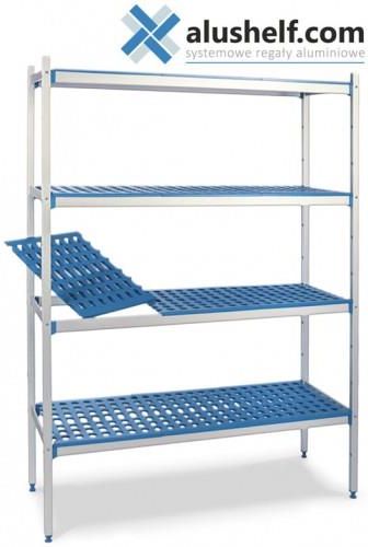 Regał aluminiowy wolnostojący 4 półki 67x40x175cm - alushelf WYMIARY długość: 67cm wysokość: 175cm (opcja podwyższenia do 240cm) szerokość: 40cm (dostępne także 50 i 60cm) ilość półek: 4 szt (opcje dokupienia kolejnych) ilość podpór: 2szt (w zależności od długości regału) Regały alushelf …