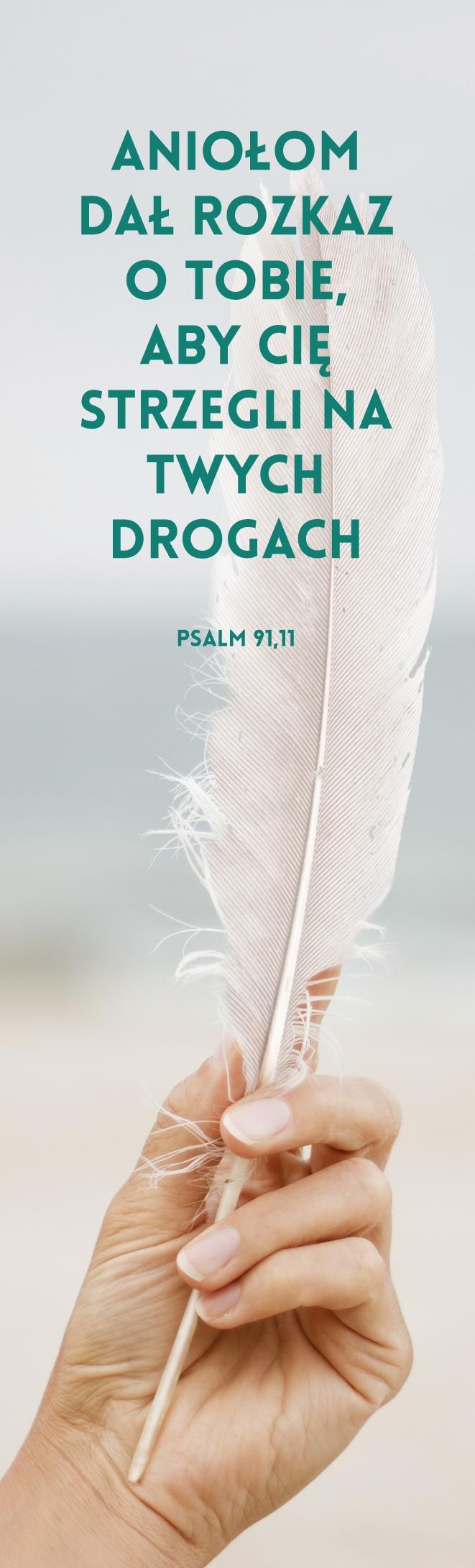 Aniołom dał rozkaz o tobie, aby cię strzegli na wszystkich twych drogach. Ps 91,11 Ta pięknie wykonana papierowa zakładka pomoże Ci zaznaczyć miejsce, w którym przerwałeś czytanie ulubionej książki, ale również przypomni najważniejszą myśl dnia. Idealnie sprawdzi się też jako dodatek do książkowego prezentu. A Ty masz już swoją wyjątkową zakładkę do książki?