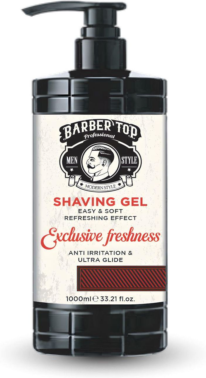 BARBER TOP Shaving Gel Exclusive Freshness – żel do golenia 1000 ml Profesjonalny żel do golenia od Barber Top, który zapewnia maksymalny komfort podczas codziennej pielęgnacji zarostu. Stworzony z myślą zarówno o użytku domowym, jak i profesjonalnym, gwarantuje precyzyjne, gładkie golenie oraz uczucie świeżości i nawilżenia. Dzięki żelowej konsystencji produkt łatwo się rozprowadza, tworząc idealny poślizg dla maszynki. Minimalizuje ryzyko podrażnień, zaczerwienień oraz zacięć, jednocześnie pielęgnując skórę i przygotowując zarost do dokładnego golenia. Najważniejsze cechy produktu: intensywnie nawilżająca formuła chroniąca skórę podczas golenia, zapewnia doskonały poślizg maszynki, zmniejsza ryzyko podrażnień i zaczerwienień, orzeźwiający, świeży zapach dodający energii, żelowa konsystencja ułatwiająca precyzyjną aplikację, odpowiedni do wszystkich typów skóry, formuła bez parabenów – delikatna dla skóry. Zalety stosowania: zmiękcza zarost, ułatwiając dokładne golenie, chroni skórę przed uszkodzeniami mechanicznymi, zapewnia uczucie świeżości i komfortu po goleniu, idealny do codziennego stosowania oraz pracy w salonie barberskim. Sposób użycia: Nanieś odpowiednią ilość żelu na wilgotną skórę twarzy. Rozprowadź równomiernie, a następnie przystąp do golenia. Po zakończeniu dokładnie spłucz wodą. Duże, ekonomiczne opakowanie 1000 ml sprawia, że jest to doskonały wybór dla barberów oraz osób ceniących wydajność i profesjonalną jakość w codziennej pielęgnacji.