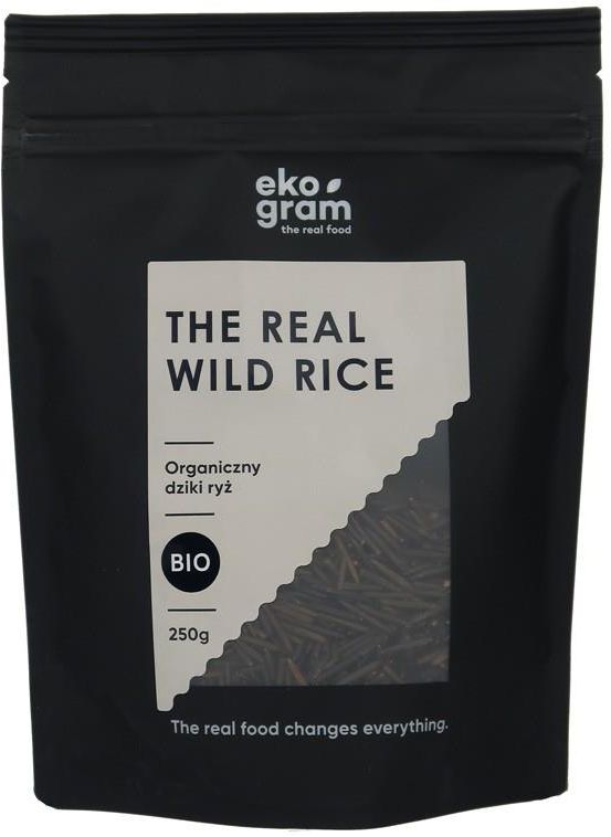 Kilka podstawowych informacji o dzikim ryżu Ryż dziki pochodzi z Ameryki Północnej, a jego znaki rozpoznawcze to duże, czarne ziarna, głębia smaku oraz lekko orzechowy aromat. Nie tylko nadaje potrawom oryginalny smak, ale posiada także liczne właściwości zdrowotne. Jest to produkt bezglutenowy, posiadający niski indeks glikemiczny. Sprawia, że gotowanie staje się smaczne i zdrowe, a przy tym łatwe i szybkie. Ryż dziki można kupić w naszym sklepie internetowym w korzystnej cenie, mając przy tym pewność, że pochodzi on wyłącznie od sprawdzonych producentów prowadzących certyfikowane, ekologiczne uprawy. Właściwości i składniki odżywcze dzikiego ryżu Naturalny dziki ryż jest ważnym składnikiem zdrowej diety. Bardzo dobrze zastępuje ziemniaki, makarony czy ryż biały, a przy tym posiada niewiele kalorii. Można go z powodzeniem stosować podczas odchudzania. Warto wspomnieć, że ryż dziki zawiera zdecydowanie więcej białka i mniej tłuszczu niż zwykły ryż. Jest też naturalnym źródłem błonnika, kwasu foliowego, magnezu, fosforu, cynku, witaminy B6 i niacyny. Dziki ryż to atrakcyjny i smakowity dodatek do wielu potraw. Na jego bazie powstało wiele oryginalnych przepisów. Bardzo dobrze sprawdza się w sałatkach, można go też serwować z kurczakiem lub z samymi warzywami. Ekologiczny ryż dziki - gdzie najlepiej kupić? Jeśli zależy Ci na wiarygodnym zakupie ekologicznego ryżu dzikiego, koniecznie zapoznaj się z ofertą naszego sklepu online. Gwarantujemy sprawdzone bio produkty najwyższej jakości. Informacje o produkcie Producent: Michał Pelc ANAGRAM, Wiarusa 3/3, 32-087 Zielonki Składniki: 100% BIO Dziki ryż Kraj pochodzenia: Kanada Ilość netto: 250g Certyfikaty: Produkt pochodzący z upraw ekologicznych, objęty certyfikatem: PL-EKO-03. Alergeny: Produkt może zawierać śladowe ilości glutenu, orzechów ziemnych i innych orzechów, sezamu, soi oraz mleka, ze względu na konfekcjonowanie w zakładzie, gdzie pakowane są produkty zawierające wspomniane alergeny. Termin przydatności: Wszystkie produkty pochodzą z regularnych dostaw. Dziki ryż wartości odżywcze Wartość odżywcza w 100g produktu: Wartość energetyczna 1497 kJ / 357 kcal Tłuszcz 1,1 g w tym kwasy tłuszczowe nasycone 0,2 g Węglowodany 68,7 g w tym cukry 2,5 g Białko 14,7 g Sól 0,02 g