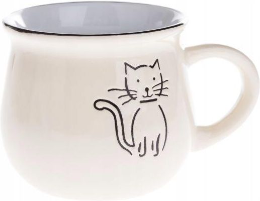 Ceramiczny kubek kremowy z czarnym kotem i czarną obwódką imitujący emalię. Pojemność kubka 440 ml. Kubeczek ma kształt beczułki. Wzór ten idealnie wkomponuje się do każdej kuchni. Ciekawy pomysł wzoru na kubku sprawia, że może on być doskonałym pomysłem na prezent dla fanów zwierząt i nie tylko. …