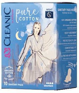 Oddychające podpaski Cleanic Pure Cotton - na noc, wykonane z bawełny i przewiewnej celulozy.