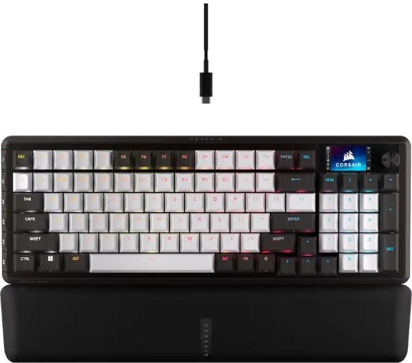 Corsair CH-91E921E-NA. Rozmiar klawiatury: 96%, Technologia łączności: Przewodowa, Interfejs urządzenia: USB, Typ klawiatury: Mechaniczna, Układ klawiatury: QWERTY. Typ podświetlacza: RGB LED, Podstawka na nadgarstek. Rekomendowane użycie: Gaming. Kolor produktu: Czarny, Biały