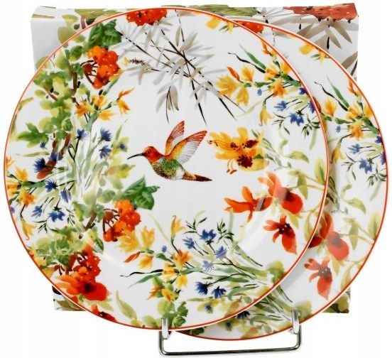 Komplet dwóch talerzy deserowych Linnea | Flower Classic Zapraszasz na kawę i ciasto? Niech deser smakuje jeszcze lepiej – podany na wyjątkowej porcelanie z serii Linneaz linii Flower Classicod marki Duo. Te dwa talerzeo średnicy19,2 cmto nie tylko praktyczny dodatek do Twojej zastawy, ale także subtelna ozdoba stołu, która wnosi odrobinę artystycznego uroku do codziennych chwil. Wykonane z trwałej porcelanyNew Bone, zachwycają białym tłemoraz malarskim motywem kwiatów w intensywnych kolorach, pośród których rozpościera skrzydła uroczy koliber. To kompozycja pełna lekkości, która sprawia, że nawet najprostsze ciastko smakuje jak w ogrodzie pełnym słońca i śpiewu ptaków. Talerze są odporne na mycie w zmywarceoraz bezpieczne do używania w kuchence mikrofalowej– codzienna wygoda spotyka się tu z estetyką na najwyższym poziomie. Całość zapakowana w elegancki kartonik, idealny na prezent – czy to dla kogoś bliskiego, czy dla samej siebie, w ramach drobnej przyjemności. Wzór:Linnea Produkt 2 x talerz deserowy 1 x oryginalny kartonik Wymiary średnica talerza 19,2 cm wysokość 1,5 cm waga talerza 204 g wymiary opakowania: 20 cm x 20 cm x h2,7 cm Materiał porcelana Użytkowanie dopuszczone do kontaktu z żywnością do zmywarki do mikrofali