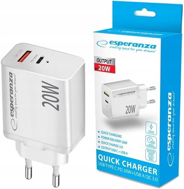 Esperanza Sieciowa 20W Usb C Pd A Qc 3 0 18W Biała Libiąż
