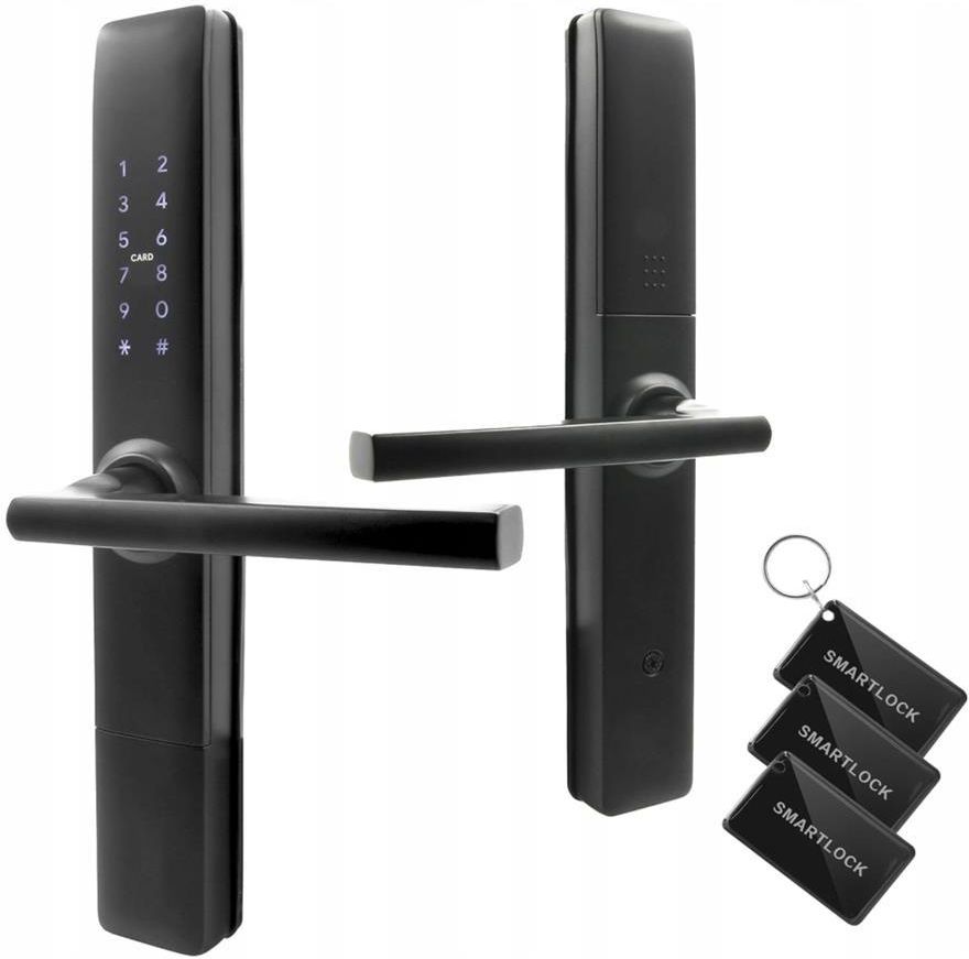 KLAMKA ELEKTRONICZNA "EURA" ELH-71H4 idealna do drzwi wewnętrznych i zewnętrznych (IP65) możliwość otwierania kodem, brelokiem lub kartą otwieranie awaryjne kluczem (wbudowana wkładka patentowa) lub poprzez dosilenie powerbank'iem (port USB) pasuje do drzwi lewych i prawych, drewnianych, aluminiowych, pełnych i profilowych wygodne zasilanie bateryjne WIDEOINSTRUKCJE MONTAŻU, PROGRAMOWANIA i OBSŁUGI 1. INSTRUKCJA KODOWANIA (na przykładzie bliźniaczego modelu) Spis treści 00:38 - dodanie breloka zbliżeniowego 01:03 - programowanie kodu dostępu Link: https://www.youtube.com/watch?v=Orisb5G4ZgU 2. MONTAŻ Instrukcja montażu zrealizowana została na drzwiach profilowych z wykorzystaniem zamontowanego zamka wpuszczanego wąskoprofilowego. Link: https://www.youtube.com/watch?v=3ABG2PImBS8 UNIWERSALNY MONTAŻ - DRZWI LEWE I PRAWE Orientacja drzwi nie ma znaczenia, inteligentne klamki mogą być montowane w drzwiach otwieranych: na lewo, do wewnątrz na prawo, do wewnątrz na prawo, na zewnątrz na lewo, na zewnątrz PASUJE DO STANDAROWYCH ZAMKÓW Klamka ELH-71H4 posiadają uniwersalny rozstaw śrub ściągających 38~40,5 mm (1). W większości przypadków pozwala ona na wykorzystanie najbardziej popularnych wkładek wpuszczanych o standardzie 72-92 mm (2) fabrycznie zamontowanych w drzwiach. IDEALNA DO ZAMKÓW WĄSKOPROFILOWYCH Klamki ELH-71H4 idealnie nadają się do montażu w drzwiach profilowych. W większości przypadków pozwala ona na wykorzystanie najbardziej popularnych wąskoprofilowych wkładek wpuszczanych o standardzie 90 mm (1) fabrycznie zamontowanych w drzwiach. Uwaga: Nie zaleca się montażu w drzwiach bezprzylgowych. JAK TO DZIAŁA? Na korpusie klamki znajduje się dotykowy szyfrator z wbudowanym czytnikiem kluczy zbliżeniowych (breloków/ pastylek). Po zbliżeniu klucza zbliżeniowego do czytnika lub wpisaniu kodu do szyfratora, następuje podanie impulsu z modułu kontroli dostępu, po czym serwomotor odblokowuje przekładnię mechaniczną, umożliwiając tym samym otwarcie drzwi poprzez normalne przyciśnięcie klamki po stronie zewnętrznej. Okres oczekiwania na wciśnięcie klamki ustawiony jest fabrycznie na ok. 5 sekund, po tym czasie następuje ponowna blokada przekładni i przejście zamka w stan oczekiwania na podanie kolejnego impulsu. Od strony wewnętrznej lokalu zawsze istnieje możliwość otwarcia drzwi poprzez zwykłe naciśnięcie klamki. Po zamknięciu otwartych drzwi następuje natychmiastowe zadziałanie mechanizmu zapadki, uniemożliwiając otwarcie drzwi od zewnątrz bez zbliżenia karty lub wprowadzenia kodu. W przypadku rozładowania baterii lub awarii istnieje możliwość otwarcia zamka przy użyciu zwykłego klucza mechanicznego, którego 2 sztuki znajdują się na wyposażeniu każdego zestawu. Klamka elektromechaniczna zasilana jest 4 alkalicznymi bateriami 1,5 V typu AA i na jednym komplecie baterii może pracować ok. 1 roku. Wgląd w status naładowania baterii dostępny jest w aplikacji po synchronizacji z klamką okresowo (za pomocą Bluetooth) lub w czasie rzeczywistym (po zastosowaniu bramek WiFi w systemie). SPECYFIKACJA TECHNICZNA Napięcie zasilania: 6 V DC Rodzaj zasilania: Baterie alkaliczne (4 x AA 1,5V) Pobór prądu - czuwanie / praca: Maks. liczba użytkowników: Karty- 200, Kody PIN-200 Przeznaczenie do drzwi: lewe / prawe Materiał obudowy: Stop cynku Czas trwania impulsu zwalniającego: 5-90 sek. Szyfrator: Tak, dotykowy Maks. moc promieniowania (RFID): <5mw> Częstotliwość pracy (RFID): Mifare 13,56 MHz Dopuszczalna wilgotność względna: 0-95% Temperaturowy zakres pracy: -35ºC ~ +55ºC Zalecane miejsce instalacji: wewnętrzne i zewnętrzne Współczynnik ochrony: IP55 Siła zamykająca lub siła potrzebna do rozpoczęcia ruchu skrzydła: 10 N Okucia poruszane dłonią - moment maksymalny (Nm): 1 Nm Okucia poruszane dłonią - siła maksymalna: 10 N Wymiary szyldu zewnętrznego (W x SZ x G): 300 x 43 x 24 mm Wymiary szyldu wewnętrznego (W x SZ x G): 300 x 43 x 24 mm Waga netto: 1200 g WYMIARY