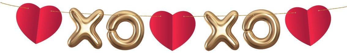 Girlanda papierowa XoXo, 200 cm Długość: 200 cm Materiał: papier Kolor: czerwony, złoty Ilość sztuk w opakowaniu: 1 szt. Producent: Godan S.A. Oprawa: blister Format: 331x172 mm