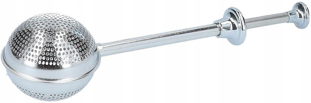 SREBRNY ZAPARZACZ ze stali nierdzewnej KULKA do herbaty CARMANI - 5 cm Stalowy zaparzacz do herbaty Wyjątkowy metalowy zaparzacz do herbaty liściastej w kształcie kuli. Jedyną rzeczą, która może odebrać nam przyjemność z picia herbaty są pływające luźno fusy, których wybranie kończy się zwykle szybkim wystudzeniem naparu. Dodatkowo należy pamiętać, że w przypadku niektórych herbat czas parzenia nie powinien przekroczyć 3 minut, dlatego powolne wyławianie liści może spowodować utratę ich cennych właściwości i aksamitnego smaku. Wygodny metalowy zaparzacz pomoże nam pozbyć się tego uciążliwego problemu! To ,,Must have" każdego herbaciarza. Bardzo łatwy i przyjemny w obsłudze. Wystarczy wsypać herbatę do zaparzacza i wstawić go do kubka lub filiżanki, by cieszyć się wyjątkowym smakiem naparu. Dzięki odpowiedniej wielkości zyskujesz pewność, że wsypiesz idealną ilość liści by uzyskać to, co w nich najlepsze. Paczka ulubionej herbaty liściastej i metalowy zaparzacz stanowić będzie idealną prezentową parę, którą zachwyci się każdy miłośnik gorących naparów. Zasmakuj przyjemności z picia herbaty zaparzonej w odpowiedni sposób! Szczegółowe informacje Średnica: 5 cm Wysokość: 17 cm Materiał: stal nierdzewna Producent: Carmani