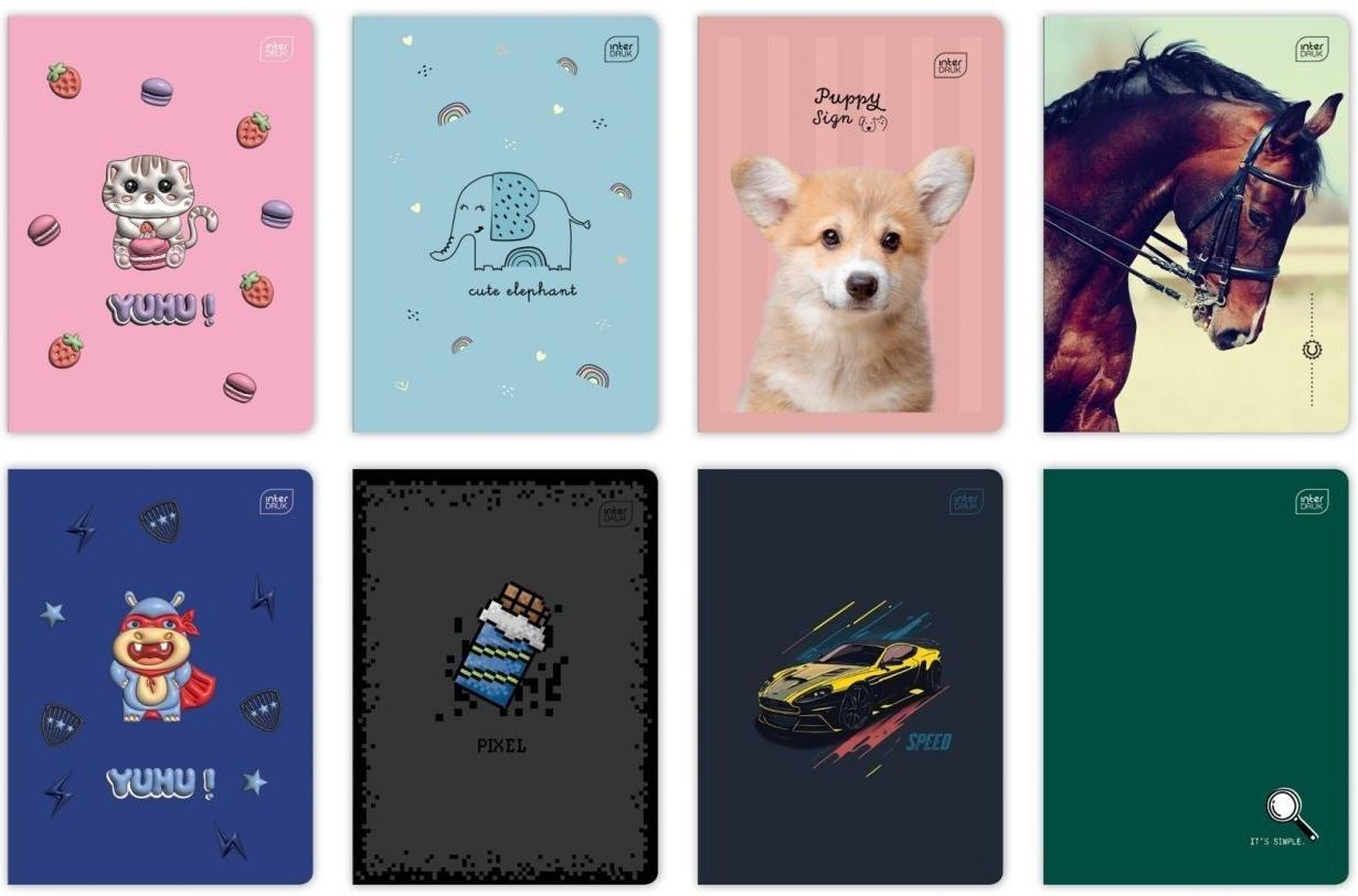 Opakowanie zbiorcze zawiera 20 sztuk. Format: A5. Liczba kartek: 16. Zadruk w trzylinię. Zaokrąglone rogi. Okładka pokryta lakierem UV. Ściąga z podstaw ortografii na odwrocie zeszytu.