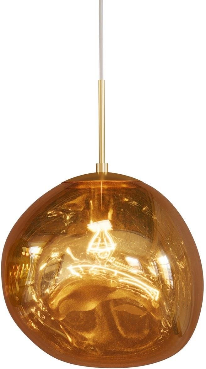 LAMPA WISZĄCA LIQUID DIAMOND 35 CM SZKŁO ZŁOTE Wisząca lampa LIQUID DIAMOND idealnie nadaje się do przestronnych wnętrz wykończonych w stylu nowoczesnym, gdzie będzie ona pełniła funkcję nie tylko oświetlenia, ale także przepięknej dekoracji, która bez wątpienia przykuję uwagę każdego. Wykonana została z niezwykłą starannością wraz z najmniejszymi detalami. Głównym jej elementem jest szklany klosz w odcieniu złotym, który harmonijnie i jednolicie współgra ze złotą metalową podstawą. Wysokość lampy można swobodnie regulować do 130cm, dostosowując do własnych potrzeb. Dzięki szklanej konstrukcji klosza żarówka pełni nie tylko funkcję oświetleniową, ale także dekoracyjną. To rozwiązanie pozwala lampie emitować ciepłe światło, które wprowadza przytulny nastrój. Minimalistyczna, przestrzenna forma sprawia, że lampa LIQUID DIAMOND znakomicie sprawdzi się w każdym wnętrzu, dodając mu elegancji i nowoczesnego charakteru. Po zapaleniu światła zachwyca stylowym wykończeniem i unikalnym designem, stając się ozdobą każdego salonu oraz jadalni. W serii lamp LIQUID DIAMOND są dostępne różne rozmiary oraz kolory szkła, które można ze sobą mieszać w dowolny sposób - patrz produkty powiązane. Lampa sprzedawana jest bez żarówki. Invicta Interior to niezawodny dostawca ekskluzywnych designerskich mebli i akcesoriów domowych. Jest to dynamiczna i doświadczona firma z wieloletnimi międzynarodowymi kontaktami i stale poszukującą nowych produktów i innowacyjnych pomysłów. Dojrzała ogólna koncepcja firmy pozwala zaoferować klientom duży wybór nowoczesnych i klasycznych mebli o wyjątkowej jakości w rozsądnych cenach. Invicta Interior monitoruje wszystkie aktualne trendy w branży meblowej, dlatego klienci zawsze otrzymują najnowsze i najwyższej jakości designerskie meble.