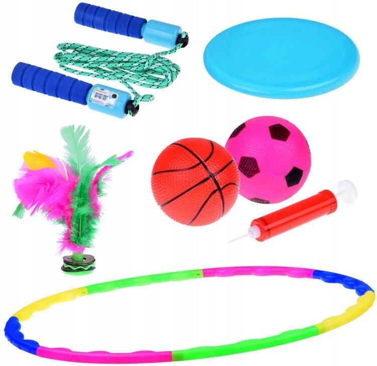 Zestaw Sportowy dla Dzieci zapewni mnóstwo ruchu na świeżym powietrzu. Zapewnij swoim dzieciom niezapomnianą dawkę radości i aktywności na świeżym powietrzu dzięki naszemu zestawowi sportowemu dla dzieci! Ten kompleksowy zestaw zawiera wszystko to, czego potrzeba, aby rozwijać umiejętności motoryczne,wzmacniać kondycję fizyczną i cieszyć się wspólną zabawą na świeżym powietrzu. Zróżnicowane Zabawy: Nasz zestaw zawiera różnorodne akcesoria sportowe, które uatrakcyjniają zabawę i pozwalają wymyślić jej różne wariację. Hula hop zapewnia doskonałą zabawę. Zestaw zawiera Hula hop: kolorowe hulahop wykonane z plastiku. Średnica 55 cm idealna dla dzieci, zapewniająca łatwe kręcenie i zabawę. Skakanka: Lekka skakanka, idealna do treningu koordynacji i zręczności. Wykonana z wytrzymałego materiału, który zapewnia długotrwałe użytkowanie. Długość regulowana max. 255 cm. Lotka: Kolorowa lotka z piórkami przeznaczona do rzucania. Doskonała zabawa dla dzieci na plaży, w ogrodzie lub na podwórku. Dysk: wykonany z lekkiego, trwałego materiału. Idealny do gry w parku, na plaży lub w ogrodzie, rozwijając umiejętności rzutu i łapania. Dmuchane piłki - piłki przeznaczone do rzucania i zabawy Każdy element zestawu wspiera rozwój różnych umiejętności u dzieci. Od motoryki dużej i małej, przez koordynację ruchową, aż po koncentrację i zręczność manualną - nasze akcesoria sportowe stymulują rozwój fizyczny i umysłowy dziecka w przyjemny i interaktywny sposób. Bezpieczeństwo i Jakość: Dbamy o bezpieczeństwo i satysfakcję naszych klientów, dlatego każdy element zestawu jest starannie wykonany z wysokiej jakości materiałów, które są bezpieczne dla dzieci. Solidne wykonanie zapewnia trwałość zabawek, pozwalając na długotrwałą i bezpieczną zabawę na świeżym powietrzu. Radosna zabawa dla całej rodziny Zestaw sportowy to nie tylko zabawa dla dzieci, ale także okazja do spędzenia aktywnego czasu w gronie rodziny. Wspólne bieganie, rzucanie piłką czy skakanie na skakance to doskonały sposób na budowanie więzi rodzinnych i tworzenie wspólnych wspomnień. Odkryj przyjemność aktywności na świeżym powietrzu z naszym Zestawem Sportowym dla Dzieci i podaruj im niezapomnianą przygodę! Odkryj świat fantastycznych zabawek w sklepie Jokomisiada! Nasza oferta to nie tylko dobra jakość i świetny design, ale przede wszystkim niezapomniane chwile radości dla Twojego dziecka. Z Jokomisiada możesz wybierać spośród szerokiego asortymentu zabawek, które rozwijają wyobraźnię, wspierają rozwój umiejętności oraz zapewniają niekończącą się zabawę. Niech Twoje dziecko eksploruje świat kreatywności i przygody z naszymi innowacyjnymi produktami, które dodadzą magii do codziennych chwil. W sklepie Jokomisiada dbamy o satysfakcję naszych klientów, oferując doskonałą obsługę oraz atrakcyjne ceny. Zapraszamy do Jokomisiada - miejsca, gdzie zabawa staje się przygodą!