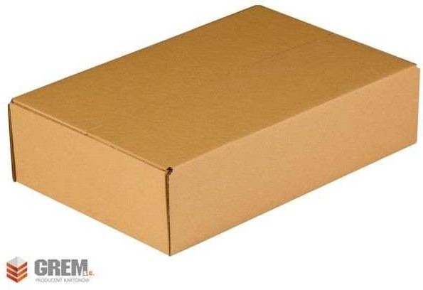 Komplet 20 szt. szarych pudeł kartonowych fasonowych o wymiarach zew. 400x300x80 mm (dł/szer/wys). Opakowania wykonane są z trzywarstwowej tektury falistej (fala E) o gramaturze 360 g/m2.