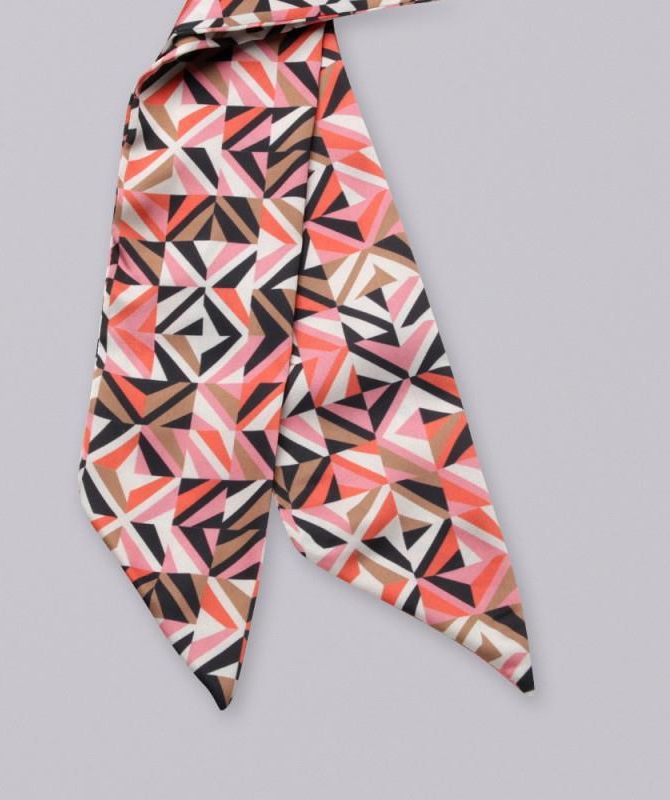 Jedwabna apaszka damska Apaszka w formie wąskiego, lekkiego szaliczka, wykonana z satyny jedwabnej z kolorowym printem. Jej forma sprawia, że można ją nosić na wiele sposobów: jako tradycyjną apaszkę na szyję, kokardę do koszuli, ozdobę do włosów, ozdobę na nadgarstek lub torebkę, jako pasek do …