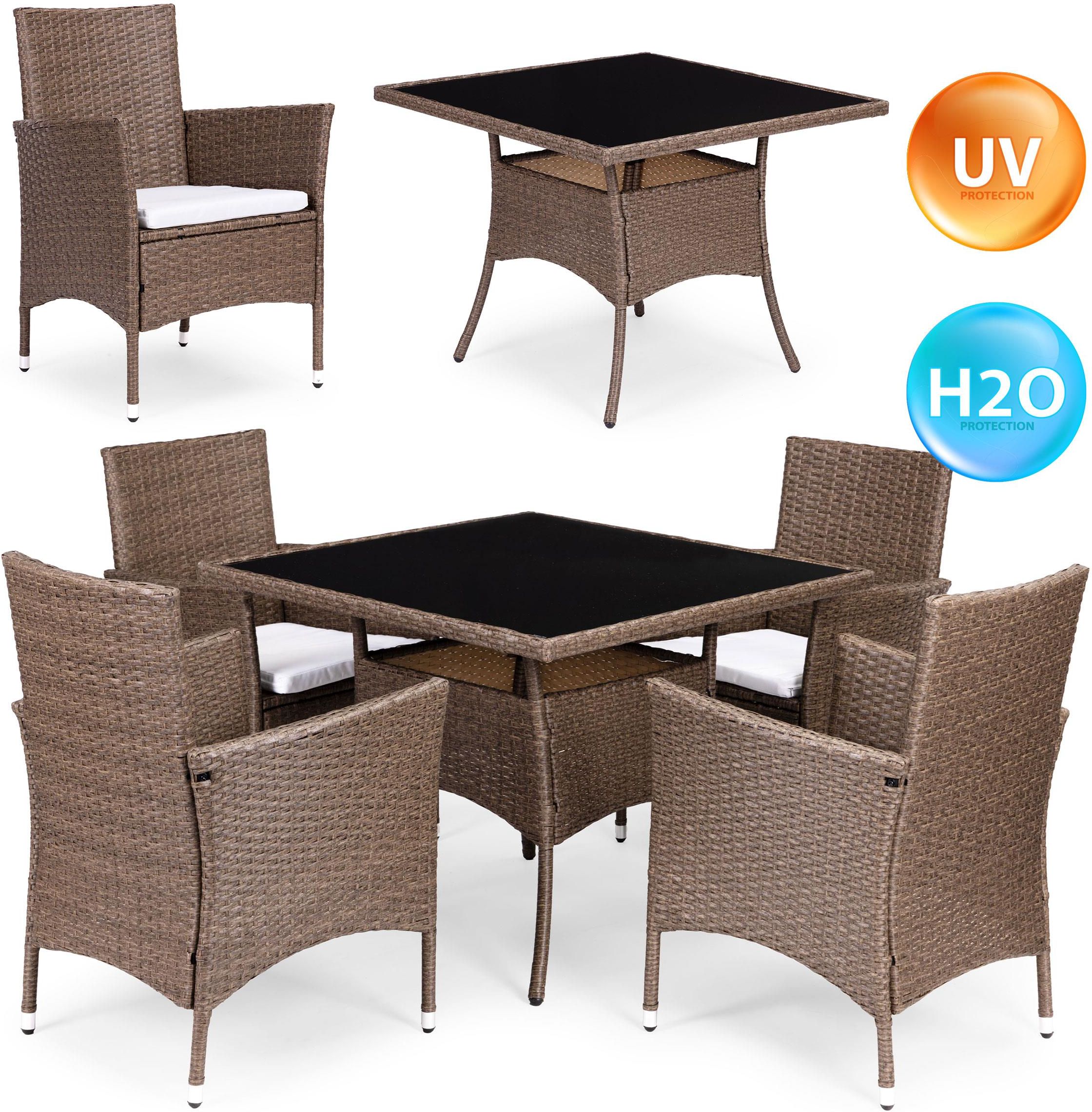 ZESTAW MEBLI OGRODOWYCH MULTIGARDEN Komplet dla 4 osób – idealny na ogród i taras W zestawie 4 krzesła i kwadratowy stół Wytrzymała konstrukcja ze stali i technorattanu Poduszki wykonane z poliestru 160 g/m² Blat ze szkła hartowanego Meble odporne na warunki atmosferyczne Nogi zakończone stopkami …