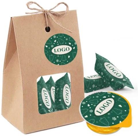 Krówki firmowe w pudełku KRAFT – elegancki upominek biznesowy z logo Krówki reklamowe w pudełku KRAFT z okienkiem to elegancki, gotowy zestaw B2B – doskonały jako firmowy upominek świąteczny, gadżet promocyjny lub dodatek do paczki prezentowej. Każdy zestaw łączy tradycyjny smak krówek z profesjonalnym brandingiem Twojej marki. Zestaw zawiera: 3 ręcznie zawijane krówki mleczno-maślane z personalizowaną banderolą, miód 25 g z etykietą firmową, pudełko fasonowe KRAFT z okienkiem (12 × 7,5 × 5,5 cm), etykietę z nadrukiem (logo, dedykacja lub grafika), sznurek dekoracyjny, projekt graficzny w cenie. Zastosowanie w biznesie: upominki świąteczne lub całoroczne dla klientów i partnerów, element paczki prezentowej lub zestawu PR, gadżet reklamowy na targi i konferencje, słodki akcent w sprzedaży B2B i e-commerce. Dlaczego warto wybrać ten zestaw: ✅ pełna personalizacja w cenie (logo, tekst, grafika), ✅ profesjonalny projekt graficzny gratis, ✅ eleganckie i ekologiczne opakowanie KRAFT, ✅ wysoka jakość krówek mleczno-maślanych, ✅ szybka realizacja – nawet w 24 godziny. Proces realizacji: Po złożeniu zamówienia otrzymasz wiadomość e-mail z formularzem personalizacji. Wystarczy przesłać logo, dane do nadruku lub dedykację. Po akceptacji projektu rozpoczynamy produkcję i pakowanie. Skład krówek: Cukier, syrop glukozowy z pszenicy, odtłuszczone mleko (12%), masło, śmietanka w proszku, tłuszcz roślinny, kwas cytrynowy, sól, aromat. ✅ Produkt bezglutenowy ✅ Bez oleju palmowego ✅ Ręcznie zawijany Parametry produktu: Ilość: 3 krówki + 1 miód 25 g Wymiary pudełka: 12 × 7,5 × 5,5 cm Materiał: papier KRAFT z okienkiem Nadruk: full color Projekt: w cenie Wykonanie: ręczne