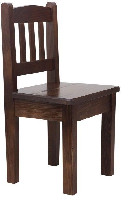 Krzesełko MINI sosnowe ORZECH Krzesełko przygotowane z myślą o dziecku w kolorze lakierowanej sosny. Siedzisko jest zrobione z litego drewna sosnowego metodą czopowania i klejenia przez co jest bardzo solidne. Do lakierowania naszych wyrobów używamy lakierów posiadających atest Państwowego Zakładu Higieny. Podstawowa wersja kolorystyczna to lakier bezbarwny. Możemy przygotować produkt surowy, gotowy do samodzielnego polakierowania. Istnieje możliwość wybarwienia na inny kolor. Wymiary krzesełka: wysokość - 56,5 cm wysokość do siedziska - 29 cm szerokość siedziska - 30,5 cm głębokość siedziska - 27 cm waga - 2,7kg produkt wysyłany w całości Nasze produkty są wykonane z litego drewna o różnych fakturach, kolorach, umiejscowieniach sęków, ale i szczelinach, które są naturalnymi cechami drewna, dodającymi im niepowtarzalny urok. Zalety naszych produktów: -produkt prosto od polskiego producenta, -100% wykonanie z litego drewna, -krzesła wykonane metodą czopowania i klejenia, a nie skręcane, -możliwość zamówienia produktu w stanie surowym, -wykończone ekologiczną farbą, -w mebelkach dziecięcych zaokrąglone kanty i rogi, -krzesła wysyłane w całości, stolik do prostego, samodzielnego montażu, -możliwość wyboru innego koloru.