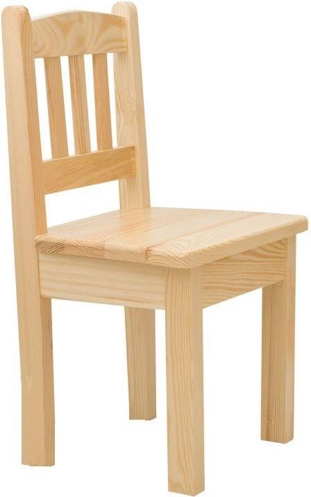 Krzesełko MINI SOSNA Krzesełko przygotowane z myślą o dziecku w kolorze bezbarwnie lakierowanej sosny. Siedzisko jest zrobione z litego drewna sosnowego metodą czopowania i klejenia przez co jest bardzo solidne. Do lakierowania naszych wyrobów używamy lakierów posiadających atest Państwowego Zakładu Higieny. Podstawowa wersja kolorystyczna to lakier bezbarwny. Możemy przygotować produkt surowy, gotowy do samodzielnego polakierowania. Istnieje możliwość wybarwienia na inny kolor. Wymiary krzesełka: wysokość - 56,5 cm wysokość do siedziska - 29 cm szerokość siedziska - 30,5 cm głębokość siedziska - 27 cm waga - 2,7kg produkt wysyłany w całości Nasze produkty są wykonane z litego drewna o różnych fakturach, kolorach, umiejscowieniach sęków, ale i szczelinach, które są naturalnymi cechami drewna, dodającymi im niepowtarzalny urok. Zalety naszych produktów: -produkt prosto od polskiego producenta, -100% wykonanie z litego drewna, -krzesła wykonane metodą czopowania i klejenia, a nie skręcane, -możliwość zamówienia produktu w stanie surowym, -wykończone ekologiczną farbą, -w mebelkach dziecięcych zaokrąglone kanty i rogi, -krzesła wysyłane w całości, stolik do prostego, samodzielnego montażu, -możliwość wyboru innego koloru.