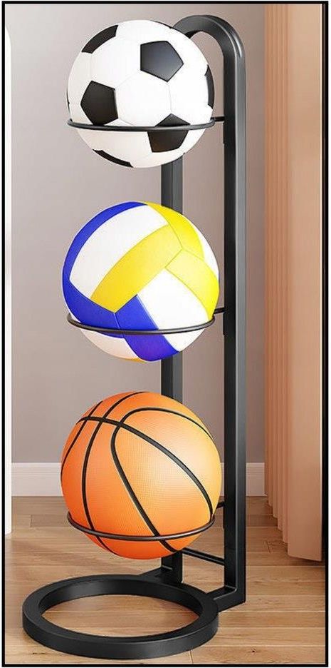 Lean Toys Stojak Na Piłki 3 Poziomy Metalowy Stabilny Matowy Czarny Libiąż