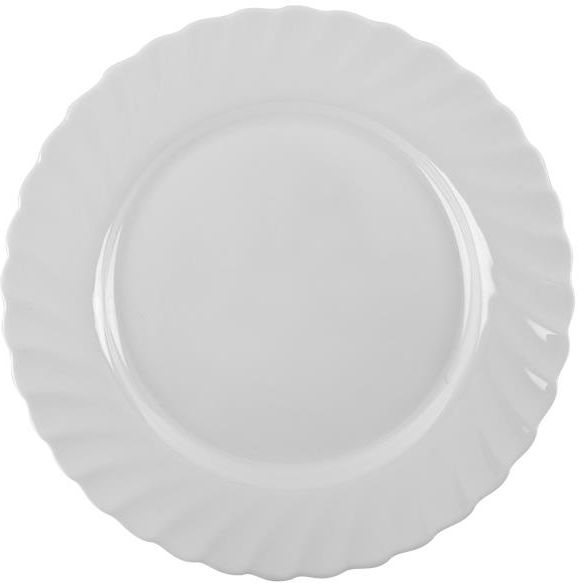 Talerz płytki, obiadowy o średnicy 27,5cm Trianon - klasyczny model zastawy stołowej z białego szkła hartowanego. Podczas produkcji szkło poddawane jest obróbce termalnej dzięki czemu talerz jest odporny na wstrząsy i uderzenia. Dodatkowo szkło nie jest porowate co oznacza, że nie gromadzi i nie zatrzymuje żadnych mikroorganizmów, a co za tym idzie - jest higieniczne. Specyfikacja produktu: Marka: Luminarc Kolekcja: Trianon Materiał: Szkło Kolor: biały Zmywarka: tak Mikrofalówka: tak
