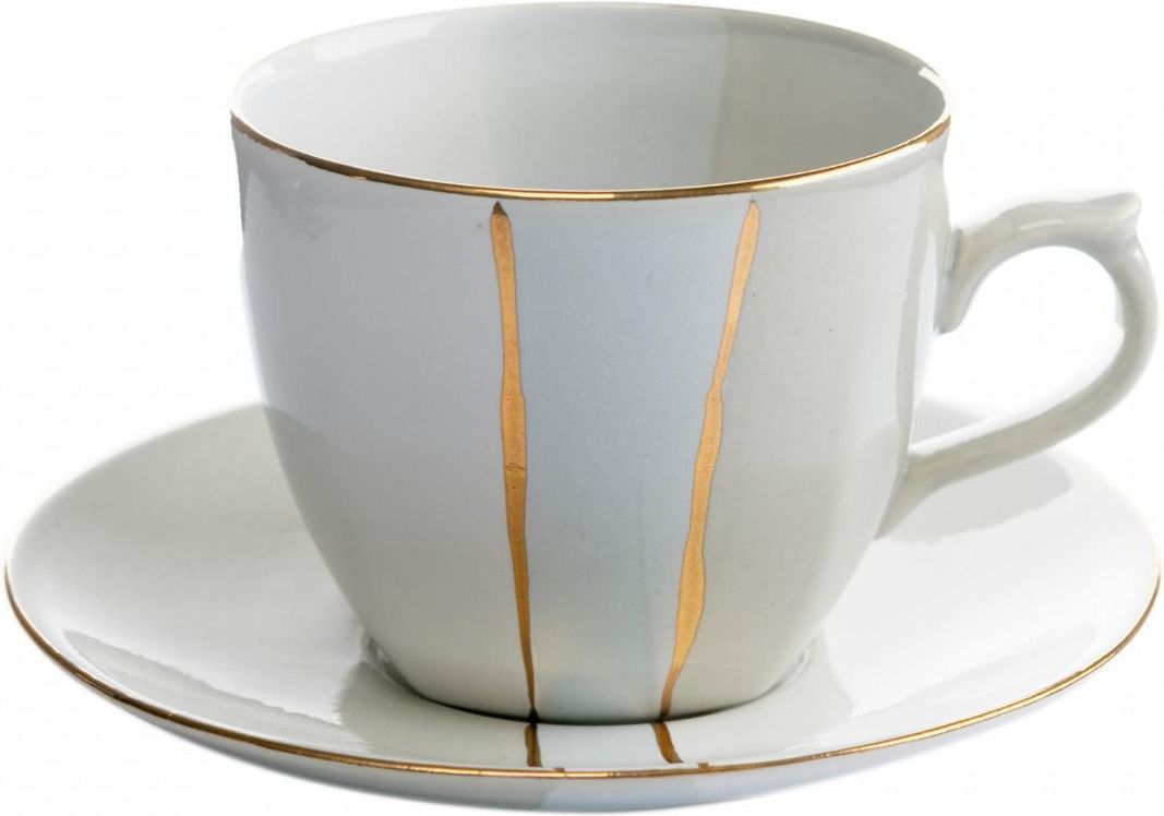 Mieroszów Filiżanka Ze Spodkiem Biało Szara Trio Libiąż