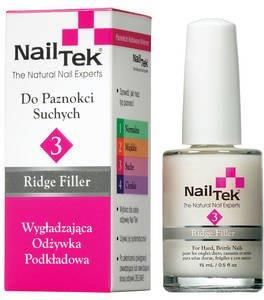 Przedmiotem oferty jest nawilżająca odżywka podkładowa do paznokci Nail Tek 3 Ridge Filler 15 ml Pielęgnacja paznokci Nail Tek Każdego dnia na stan Twoich paznokci wpływają czynniki zewnętrzne takie jak nacisk, wilgoć, detergenty czy temperatura. Codziennie zachodzą też liczne procesy wewnętrzne, wynikające z przemiany materii, np. ciągły wzrost płytki. Dlatego gwarancją skutecznej pielęgnacji Twoich paznokci jest codzienne stosowanie wyspecjalizowanych odżywek i produktów pielęgnacyjnych Nail Tek. Nail Tek oznaczył swoje odżywki następującymi kolorami i cyframi: 1. zielone - odżywki wzmacniające do paznokci normalnych; 2. pomarańczowe - odżywki utwardzające do paznokci miękkich; 3. różowe - odżywki nawilżające do paznokci suchych; 4. fioletowe - odżywki silnie utwardzające do paznokci cienkich. ⁎ ⁎ ⁎ Do każdego typu paznokci Nail Tek proponuje Ci: a. wygładzającą, mleczną odżywkę podkładową (baza); b. transparentną odżywkę do codziennej pielęgnacji (baza i top, 2w1); c. dodatkowe, pielęgnacyjne produkty uniwersalne. Nail Tek 3 Ridge Filler – Nawilżająca odżywka podkładowa do paznokci suchych, z naturalnymi wypełniaczami, o mlecznobiałej barwie, do stosowania pod lakier kolorowy. Wygładza płytkę paznokcia oraz maskuje jej przebarwienia. Pozostawia paznokcie idealnie gładkie. Sposób użycia: Stosuj bezpośrednio na płytkę paznokcia jako odżywczy podkład. Ułatwi to aplikację lakieru, wygładzi paznokcie i przedłuży trwałość manikiuru