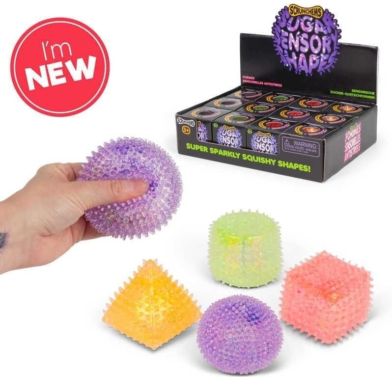 Miękkie kształty z wypustkami są idealnym narzędziem sensorycznym, które pomoże każdemu zrelaksować się i złagodzić stres. Można jej używać jako piłki antystresowej lub po prostu do zabawy podczas pracy lub nauki. Dostępne są różne kształty: kwadrat, trójkąt, kula i walec. Wymiary: 62x62 mm Opakowanie: pudełko
