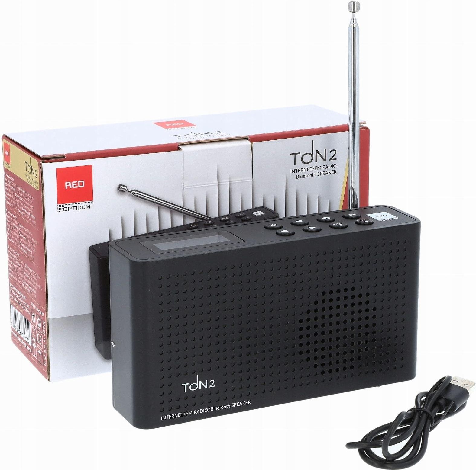 Radio Internetowe WiFi, FM, Bluetooth Opticum TON2 Opticum TON2 to radio internetowe umożliwiające również dostęp do stacji nadawanych również w paśmie FM. Po połączeniu z siecią WiFi umożliwia dostęp do tysięcy stacji radiowych dostępnych poprzez internet. Umożliwia odbiór większości popularnych polskich stacji, odbiera m.in. Nowy Świat, 357, Newonce. Doskonałe rozwiązanie dla słuchaczy mających problem z zasięgiem sygnału UKF / FM. Opticum TON2 wyposażony został w moduł WiFi oraz wejście gniazdo słuchawkowe jack 3,6mm. Dodatkową funkcją jest komunikacja Bluetooth, dzięki której można odtwarzać ulubione utwory z telefonu bądź komputera, a samo radio za pomocą jednego przycisku może zmienić się w głośnik Bluetooth. Menu w języku polskim. Wbudowana bateria o dużej pojemności pozwala cieszyć się muzyką przez długi czas bez martwienia się o dostęp do zasilania. Kompaktowe rozmiary urządzenia sprawiają, że nie zajmuje ono wiele miejsce, jest przenośne i idealnie sprawdza się w podróży. Łączność bezprzewodowa z Internetem Dzięki możliwości połączenia radia za pośrednictwem WiFi można uzyskać dostępn do muzyki z całego świata. Komunikacja Bluetooth Radioa posiada możliwość połączenia Bluetooth, dzięki której można odtwarzać ulubione utwory z telefonu bądź komputera, a samo radio za pomocą jednego przycisku może zmienić się w głośnik Bluetooth. Radio FM Urządzenie to przede wszystkim tradycyjne radio, dlateo umożliwia odbiór standardowego sygnału FM. Do 10 godzin słuchania muzyki Dzięki wbudowanej baterii będziesz mógł używać urządzenia nie martwiąc się o dostęp do zasilania. Całkowity czas ładowania urządzenia to 3 - 4 godzin. Po pełnym naładowaniu radio może działać przy średnim natężeniu głośności nawet do 10 godzin ! Urządzenie przenośne Kompaktowe rozmiary urządzenia sprawiają, że nie zajmuje ono wiele miejsce, jest przenośne i idealnie sprawdza się w podróży i wszędzie tam, gdzie nie ma dostępu do tradycyjnego źródła zasilania. Wbudowana bateria Wbudowana bateria o dużej pojemności pozwala cieszyć się muzyką przez długi czas bez martwienia się o dostęp do zasilania. Kompaktowe rozmiary urządzenia sprawiają, że nie zajmuje ono wiele miejsce, jest przenośne i idealnie sprawdza się w podróży. Timer / Sleeper Funkcja timer, w którą wyposażone jest radio pozwala na ustawienie wyłączenia urządzenia o określonej godzinie. Specyfikacja Radio Internetowe , FM / Głośnik Bluetooth Zakręs częstotliwości: FM 87,5 - 108 MHz Radio przenośne / kuchenne Wyłącznik czasowy Data i godzina Wyświetlacz 2-liniowy z informacją DLS / RDS Moc dźwięku: 2 W (RMS) x1 Jasnoniebieski wyświetlacz LCD Menu w języku angielskim i polskim Główny chipset: Silichon Lab Wejście 3,5mm gniazdo słuchawkowe Wymiary: 163 x 44 x 88 mm Zasilanie DC IN 5V, 1A Klawisze: zasilanie / Power / Mode, Info / Sleep, Scan / Preset, Enter, Vol-, Vol+, CH-, CH+ W zestawie kabel do ładowania micro USB W zestawie radio internetowe Opticum TON2 czarne kabel micro USB polska instrukcja online opakowanie RADIO0000