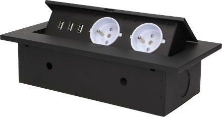 Orno Gniazda wpuszczane w blat 3xUSB 2x230VAC czarne OR-AE-1324/B Libiąż