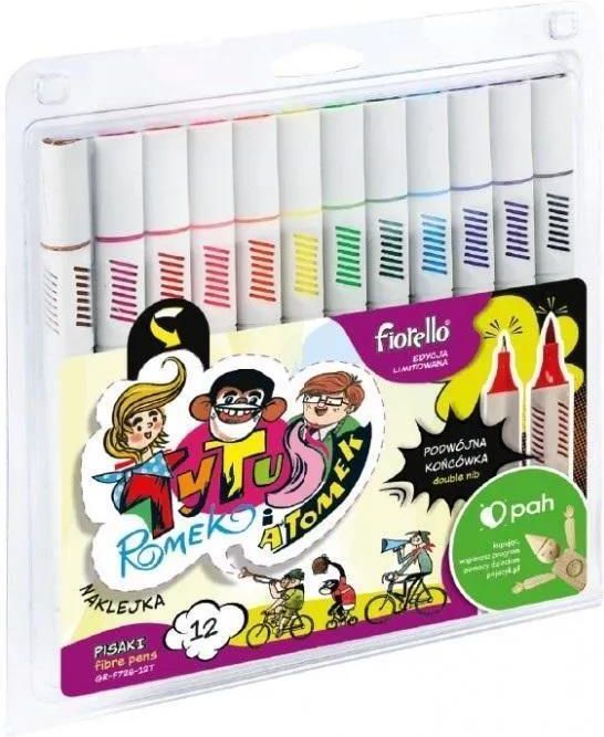 FIORELLO ID:11060/KA2382 Pisaki Sketch dwustronne 12kol FIORELLO GR-F726-12T Tytus, Romek i A'Tomek – edycja limitowana – podwójna końcówka: pędzelek + cienkopis – do tworzenia boullet journali, komiksów i innych prac kreatywnych – końcówka pędzelkowa pozwala uzyskać ciągłe, jednolite linie o …
