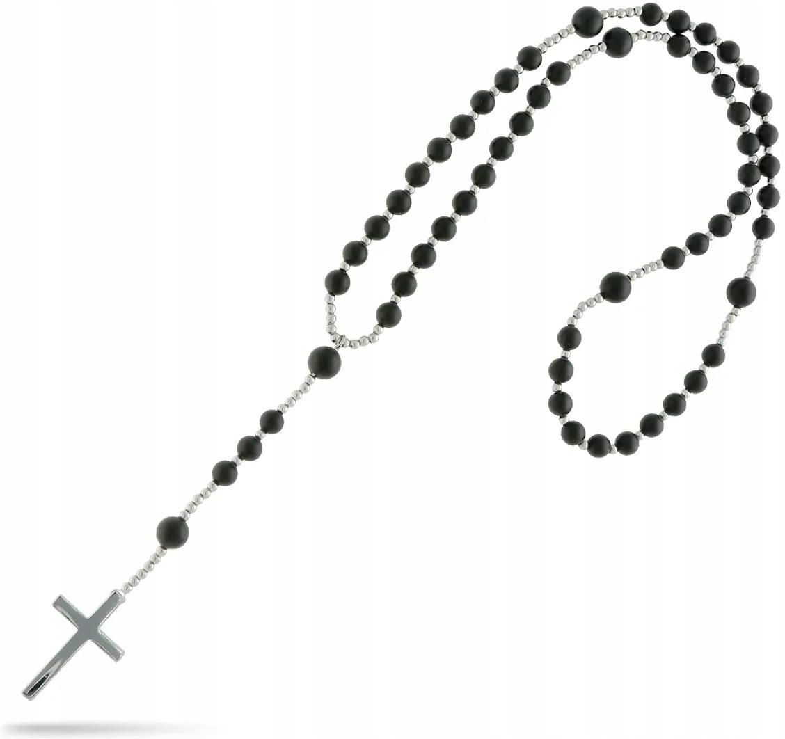 Różaniec kamienie szlachetne agat czarny mat męski prezent w pudełku LUX Symbol produktu: 4408 Cechy produktu: Rodzaj: cały Koraliki: kamienie naturalne Krzyżyk: papieski Łącznik: Komunijny Połączenie koralików: elastyczna żyłka Długość: ok 40 cm Wielkość zawieszki: 2 x 3 cm Średnica koralików: 6 mm Różaniec z kamienia szlachetnego: agatu czarnego matowionego Różaniec z kamienia szlachetnego: agatu czarnego matowionego Elegancki różaniec wykonany z stali szlachetnej i kamienia naturalnego jakim jest agat czarny matowiony. Dzięki stalowej szlachetnej konstrukcji, różaniec jest odporny na zarysowania i nie zmienia koloru w czasie użytkowania. To doskonały prezent na Pierwszą Komunię Świętą, Bierzmowanie czy urodziny. W zestawie z eleganckim białym pudełeczkiem, nasz różaniec jest gotowy na prezentację w dowolnej sytuacji. Dodatkowo, nasz różaniec nie zawiera niklu, lidu, kadmu ani ołowiu, dzięki czemu jest całkowicie bezpieczny dla użytkowników, którzy są wrażliwi na różnego rodzaju uczulenia. Długość to ok 40cm a średnica paciorka to 0,6 cm. Różaniec z kamieni naturalnych należy: przechowywać w miękkim pudełeczku/ etui systematycznie czyścić unikać kontaktu produktu z kosmetykami by ustrzec się przed np: czernieniem Dzięki właściwej pielęgnacji różaniec będzie trwalszy i posłuży wiele miesięcy.