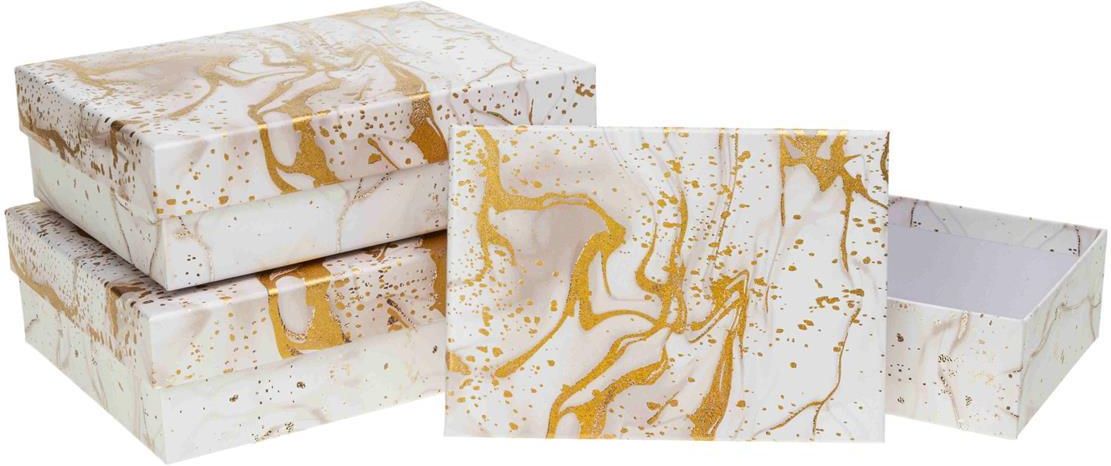 Zestaw Pudełek Ozdobnych, Kształt prostokątny, Kolor kremowy/marmur, Materiał: tektura, Zestaw 3 szt. Wymiary: S: 19*13.5*6, M: 22*16*6,5, L: 24,5*17,5*7, Uszlachetnienie - złocenie Wysokość: 245 Szerokość: 175 Głębokość: 71.000000 Grupa wiekowa: + Isbn: 5907354095612 Rodzaj: Artykuły papiernicze