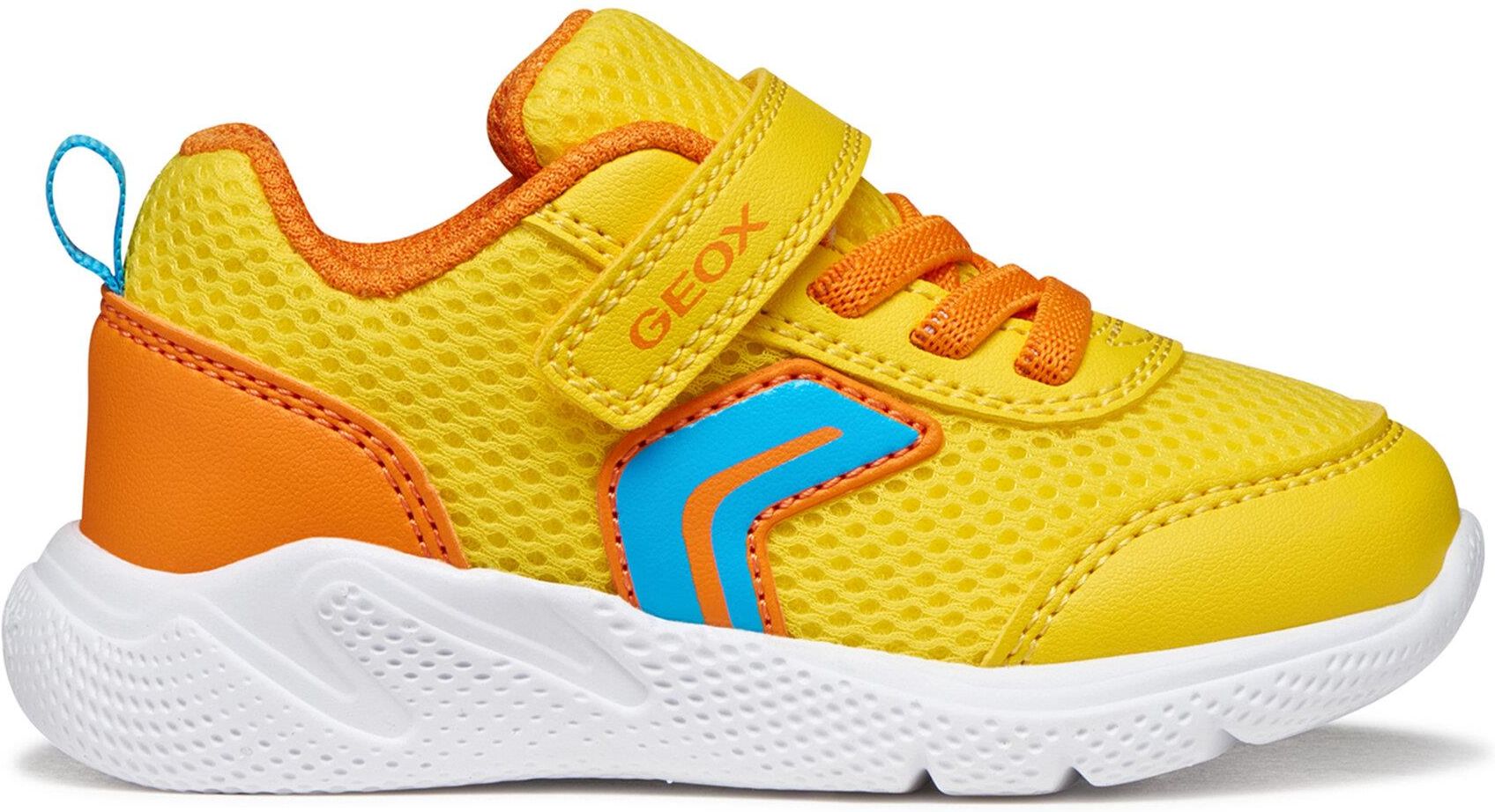 Wygodne i stylowe sneakersy dla chłopca od marki Geox to idealny wybór na co dzień! Wykonane z połączenia wysokogatunkowego tworzywa syntetycznego i materiału tekstylnego, zapewniają trwałość i komfort podczas każdej przygody. Dzięki zastosowaniu innowacyjnej technologii Geox Respira, buty gwarantują optymalną wentylację stóp, co przekłada się na doskonały komfort noszenia przez cały dzień. Dodatkowo, gumowy klin w cholewce ułatwia zakładanie i zapewnia lepsze dopasowanie. Te sneakersy to połączenie nowoczesnego designu z funkcjonalnością, które zachwyci każdego małego odkrywcę!