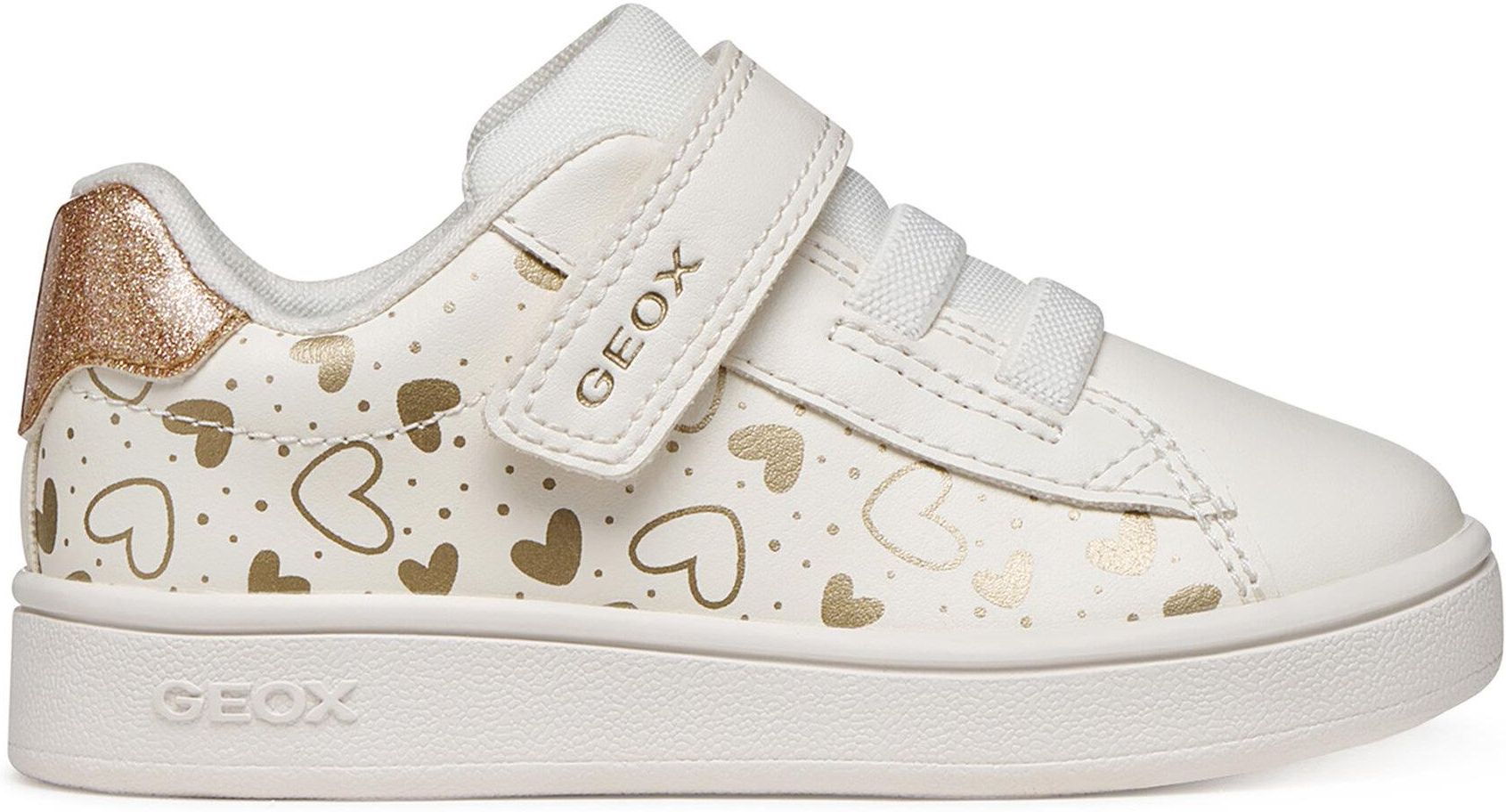 Te urocze sneakersy dla dziewczynek od marki Geox to doskonały wybór dla małych wielbicielek stylu i wygody! Wykonane z wysokogatunkowego tworzywa syntetycznego, gwarantują trwałość i łatwość w pielęgnacji. Dzięki technologii Geox Respira, buty zapewniają optymalną oddychalność, dbając o komfort małych stóp przez cały dzień. Praktyczny gumowy klin w cholewce ułatwia zakładanie i dopasowanie obuwia, jednocześnie zapewniając dodatkową elastyczność dla większej swobody ruchu. Te sneakersy to idealny towarzysz na co dzień – na spacer, do szkoły czy zabawę z rówieśnikami!