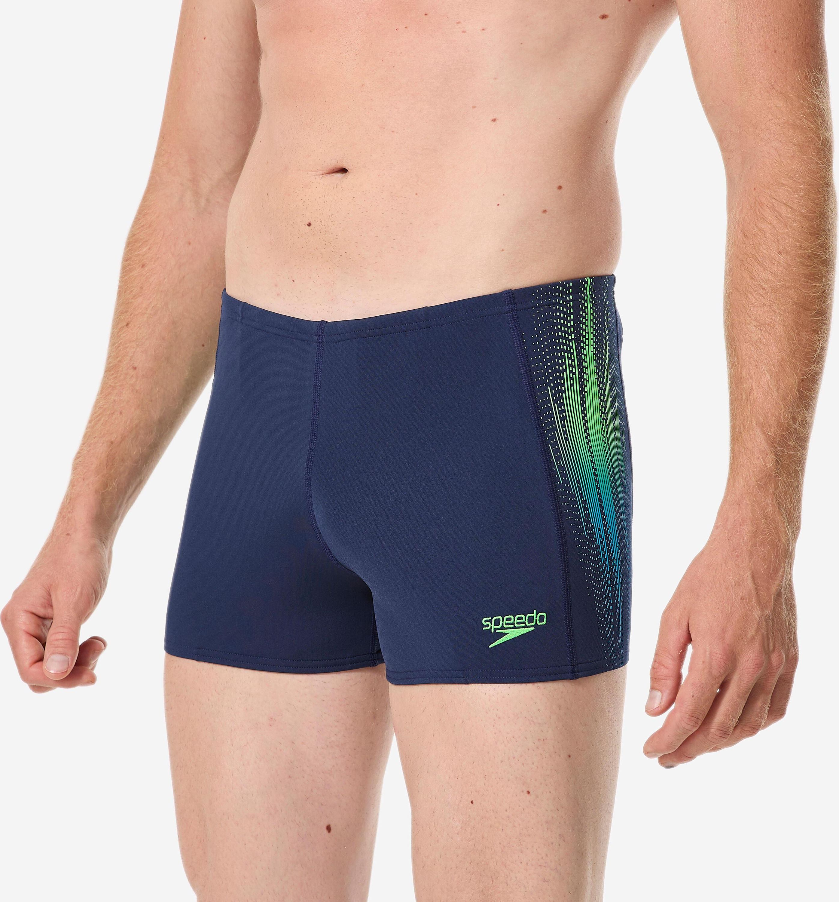 Bokserki pływackie męskie Speedo Marka:Speedo Opis produktu Bokserki pływackie ultra odporne na chlor. Krój i sznureczek ściągający oferują dobre podtrzymanie i doskonałe dopasowanie. Podszewka natomiast zapewnia dodatkowy komfort. Technologia Speedo Endurance+: doskonała odporność na chlor. Dobrze dopasowują się do ciała zapewniając jednocześnie swobodę pływania. Łatwe dopasowanie dzięki tasiemce ściągającej. Cechy kluczowe Pływanie Stroje pływackie Kąpielówki męskie na basen Bokserki do pływania Specyfikacja Przeznaczenie:Pływanie Rozmiar:46