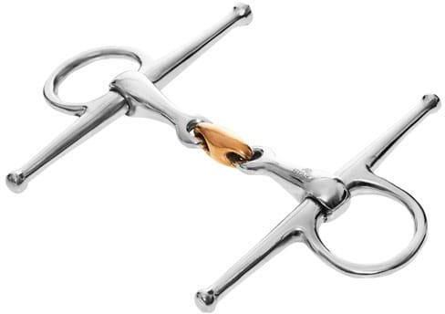 Wędzidło z wąsami START pełne podwójnie łamane miedziany łącznik 12,5 Wędzidło z wąsami. Wykonane ze stali szlachetnej z miedzianym łącznikiem. Podwójnie łamane. Rozmiar 12,5