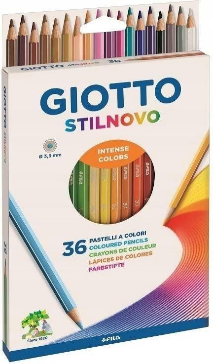 Kredki ołówkowe Giotto Stilnovo to jedne z najchętniej kupowanych kredek zarówno przez początkujących artystów jak również zaawansowanych hobbystów rysunku. Na tle konkurencji wyróżniają się dużą odpornością na złamania oraz niezwykle intensywnymi kolorami. Kolorowy grafit osłaniany jest przez najwyższej jakości drewnianą obudowę, która podczas produkcji pokryta została lakierem w kolorze odpowiadającym rysikowi. Ponadto każdy korpus zrobią posrebrzane krawędzie. Kredki Stilnovo posiadają korpus o długości 18 cm, co czyni je wyjątkowo wydajnymi. Kolejną ich zaletą jest to, że kredki łatwo się temperują. Sześciokątny przekrój kredek sprawia, że nie wyślizgują się z dłoni i wygodnie leżą w dłoni. Kredki Stilnovo są nietoksycznei mogą być używane przez dzieci. Doskonale nadają się zarówno do szkoły jak również domowych projektów plastycznych. W zestawie występuje 36 intensywnych kolorów.