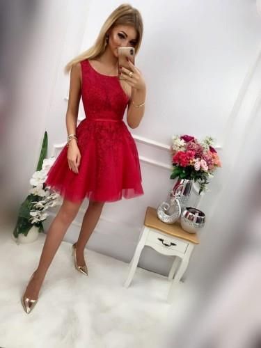 Nietuzinkowa krótka sukienka tiulowa.Góra gorsetowa dobrze dopasowana, świetnie podkreśla kobiece kształty. Całość pięknie udekorowana nietuzinkową koronką.Plecy sznurowane i zapinane na zamek. Dół sukienki posiada kilka halek, które pięknie go unoszą. Kreacja idealnie sprawdzi się na wesele dla gościa lub dla druhny a także na inne okazje. Sukienka jest szyta w rozmiarach 34 - 38 W razie braku poszukiwanego rozmiaru prosimy o kontakt Tabela wymiarów danego modelu sukienki (wymiary podane w centymetrach) rozmiar biust pas 34 80-90 64-68 36 84-94 68-72 38 86-98 70-74 Ponieważ sukienki szyte są na dwu szwalniach bardzo prosimy przed zakupem o kontakt telefoniczny lub mailowy z podaniem swoich wymiarów. W ten sposób dużo łatwiej i bezpieczniej będzie dobrać odpowiedni rozmiar lub odpowiednią sztukę ze względu na delikatne różnice w wymiarach. Lepiej dobrze ustalić niż wymieniać :)