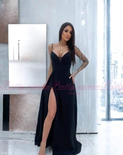 Zjawiskowa długa, wąska sukienka z rozporkiem eksponującym nogę. Góra sukienki z pięknym dekoltem na cieńkich ramiączkach. Zapinana z tyłu na zamek. Sukienka uszyta z lekko rozciągliwego materiału dzięki czemu idealnie dopasowuje się do ciała. Na brzuchu szeroki pas podkreślający talie. Kreacja …
