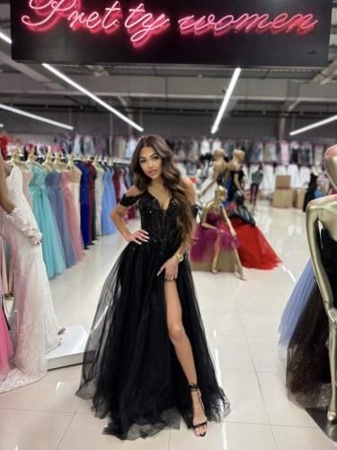 Zjawiskowa długa sukienka tiulowa. Góra sukienki dobrze dopasowana gorsetowa, ozdobiona przepiękną koronką i cekinami Wszyte miseczki pozwalają na nie zakładanie biustonosza. Cienkie ramiączka, oraz opadające na ramiona koronkowe rękawki które można odpiąć, tył sznurowany i zapinany na zamek. Dół …