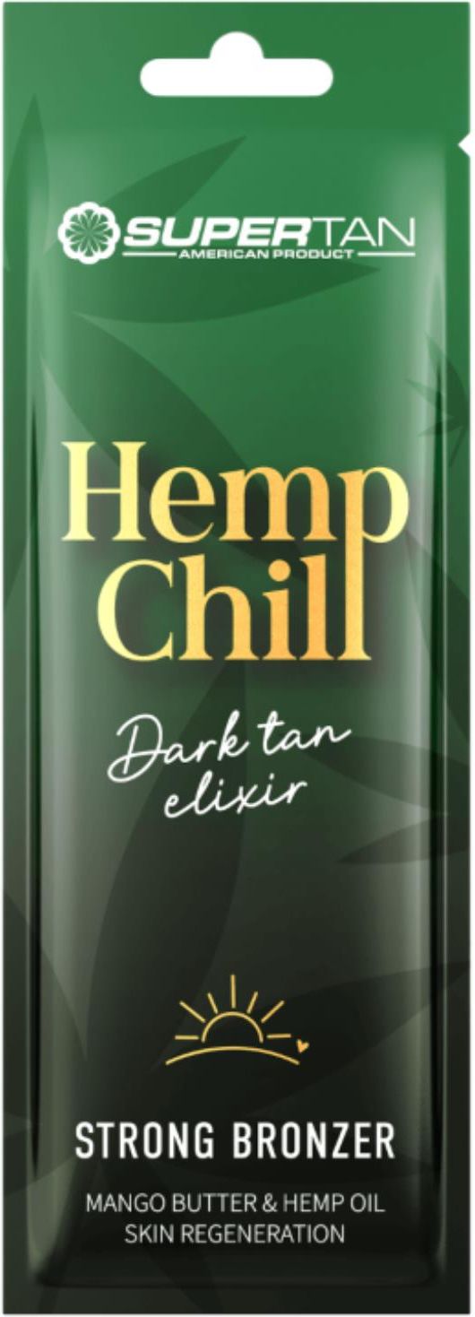 Supertan Hemp Chill Mocny Bronzer O Właściwościach Regenerujących 15mlOdkryj nowy wymiar opalania z bronzerem Hemp Chill od marki SuperTan.Hemp Chill to mocny bronzer o właściwościach regenerujących, który przyspiesza naturalny proces opalania. Bogaty w egzotyczne oleje i masła podtrzymuje zdrowy blask, pielęgnuje i pogłębia brązowy kolor skóry. Aplikacja Hemp Chill Bronzer to niezwykła przyjemność! Jego lekka i jedwabista formuła dosłownie rozpływa się na skórze, zapewniając natychmiastowe uczucie komfortu.Odkryj spokój i relaks – kontynuuj swoje regularne sesje opalania, stopniowo pogłębiając marzenie o głębokim i intensywnym odcieniu opalenizny.SuperTan Hemp Chill zaprasza do odkrycia piękna opalenizny w najbardziej zmysłowy sposób!Zapach: mango & vanillaPojemność: 15mlSkładniki aktywneHemp Oil – działa nawilżająco, bogaty w kwasy tłuszczowe omega-3 i omega-6, regeneruje skórę, przyczyniając się do poprawy jej elastyczności i sprężystościCoconut Oil – działa łagodząco, skutecznie pielęgnuje skórę, wykazuje właściwości ochronneMango Butter – wspomaga procesy naturalnej odbudowy naskórka, wygładza i ujędrnia skóręKokum Butter – skutecznie nawilża, zapobiega wysuszeniu skóry, powstawaniu zmarszczek, wspomaga regeneracjęCupuacu Butter – wykazuje działanie natłuszczające, nawilżające oraz ochronne, zawiera naturalne antyutleniacze neutralizujące działanie wolnych rodnikówShea Butter – zatrzymuje wilgoć, doskonale nawilża, wygładza oraz zmiękcza skóręSposób użycia:Nanieś równomierną warstwę bronzera na całą powierzchnię ciała bezpośrednio przed sesją w solarium. Po aplikacji, umyj dokładnie ręce! Pamiętaj, że produkt przeznaczony jest wyłącznie do użytku zewnętrznego. Stosuj każdorazowo przed wizytą w solarium.