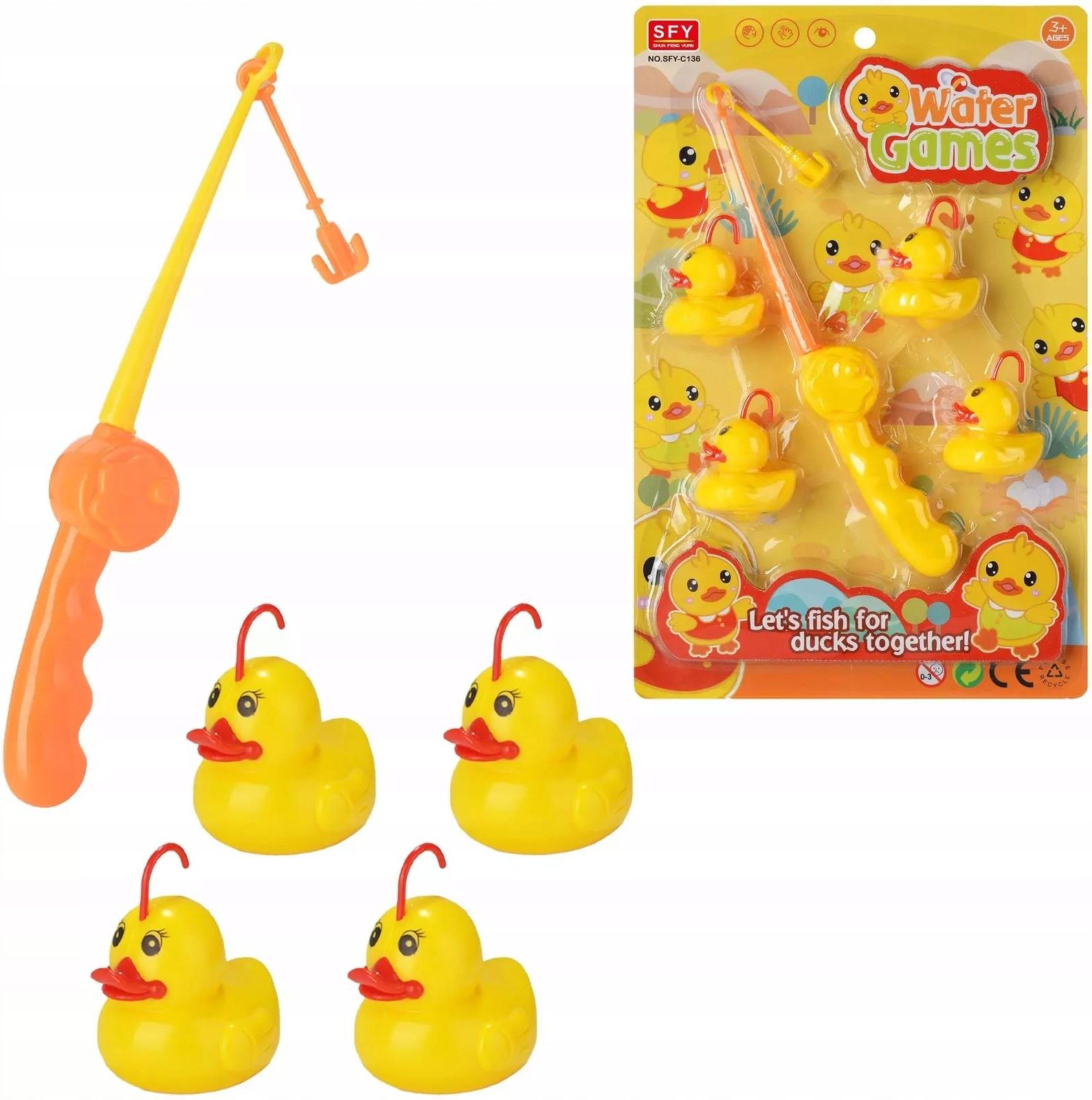 Zestaw do Łowienia Kaczek "Water Games" - Wspaniała Zabawa w Kąpieli i Nie Tylko! Przedstawiamy uroczy zestaw do łowienia kaczek z serii "Water Games", który zamieni każdą kąpiel, basenik czy nawet miskę z wodą w prawdziwe wędkarskie pole do popisu! Ta wesoła zabawka zapewni godziny radości i pomoże rozwijać zdolności manualne najmłodszych. Cechy produktu: Kompletny Zestaw: W skład zestawu wchodzi jedna żółto-pomarańczowa wędka z haczykiem oraz cztery urocze, żółte kaczuszki z pętelkami na głowach, gotowe do złowienia. Wesołe Kaczuszki: Każda kaczuszka jest lekka i pływająca, a specjalne pętelki ułatwiają celowanie i zaczepianie ich haczykiem wędki. Ich klasyczny wygląd i intensywny kolor przyciągają uwagę dziecka. Rozwój Umiejętności: Zabawa w łowienie kaczek doskonale wpływa na rozwój koordynacji ręka-oko, precyzji ruchów oraz cierpliwości u dziecka. Jest to także świetny sposób na zachęcenie maluchów do kąpieli. Idealna do Wody: Zabawka jest przeznaczona do użytku w wodzie, dzięki czemu sprawdzi się podczas codziennej kąpieli w wannie, zabawy w baseniku ogrodowym czy nad jeziorem (pod nadzorem osoby dorosłej). Bezpieczeństwo: Produkt jest przeznaczony dla dzieci w wieku 3 lat i starszych (zgodnie z oznaczeniem "3+" na opakowaniu), co gwarantuje bezpieczeństwo użytkowania dla tej grupy wiekowej. Atrakcyjne Opakowanie: Zestaw jest zapakowany w kolorowy blister z wizerunkami wesołych kaczuszek, co czyni go idealnym pomysłem na prezent na każdą okazję. Na opakowaniu widnieje hasło "Let's fish for ducks together!", zachęcające do wspólnej zabawy. Wielkość opakowania: 26x17x3 cm Idealny dla: Dzieci uwielbiających zabawę w wodzie. Rodziców szukających edukacyjnych zabawek do kąpieli. Prezentu na urodziny, Dzień Dziecka czy inną okazję. Zapewnij swojemu dziecku mnóstwo śmiechu i wodnej przygody z naszym zestawem do łowienia kaczek!