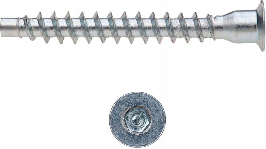Konfirmat - 6.4x50 mm - 100 sztuk PARAMETRY TECHNICZNE: Średnica wkręta [d]: 6,4 mm Długość wkręta [L]: 50 mm Średnica główki [D]: 10 mm Gniazdo imbusowe [s]: IMBUS 4 Ilość w opakowaniu jednostkowym (opJ): 100 sztuk Podłoże: Płyta wiórowa, sklejka, drewno, płyta OSB, płyta MDF Materiał: Stal niskowęglowa ocynkowana galwanicznie Wkręty konfirmatowyTRÓJKA stosowany jest głównie do wykonywania połączeń płyt wiórowych, płyt OSB, elementów drewnianych. Płaski łeb pozwala na elastyczne i trwałe łączenie oraz zlicowanie wkręta z płytą meblową. Wkręt posiada gniazdo imbusowe. Tępe zakończenie wkręta ułatwia prowadzenie osiowe w otworze montażowym, oraz pozwala na wykorzystanie gwintu na całej długości do wzmocnienia połączenia