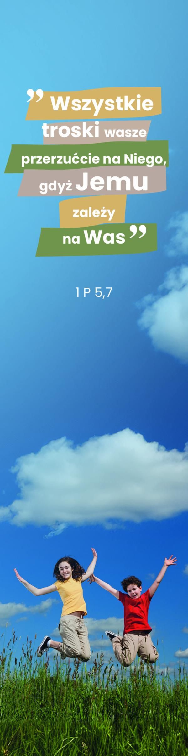 Wszystkie troski wasze przerzućcie na Niego, gdyż Jemu zależy na Was. 1 P 5,7 Ta pięknie wykonana zakładka idealnie sprawdzi się jako dodatek do książkowego prezentu dla twojego dziecka oraz jako nagroda dla ucznia za aktywność na zajęciach, wzorowe zachowanie, udział w konkursie itp.