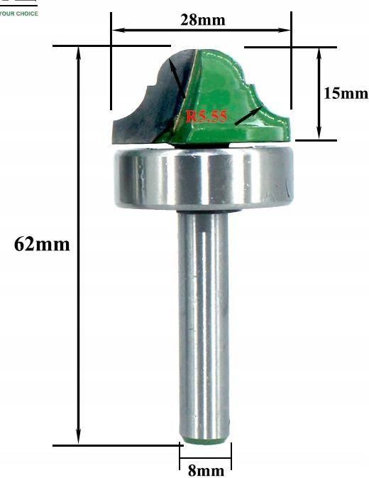 frez z płytkami z węglika do płycin w drewnie mdfie .Może pracować na frezarce dolno wrzecionowej dzieki lożysku oporowemu jak i po demontażu tegoż łożyska można założyć go do frezarki cnc Szerokość głowicy tnącej 28mm wysokość 15mm trzpień 8mm wysokość całkowita 62mm