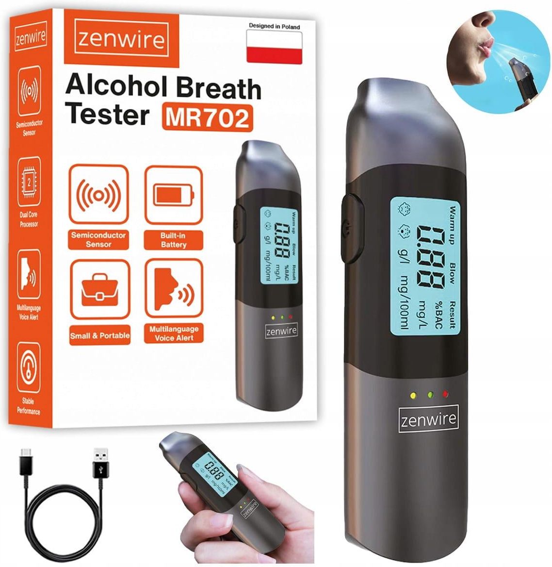 Alkomat Bezustnikowy Profesjonalny Policyjny Elektroniczny LCD Precyzyjny z Wbudowaną Baterią USB-C Zenwire MR702 Kompaktowy cyfrowy bezustnikowy alkomat Zenwire MR702 pozwoli na dokonanie błyskawicznego pomiaru alkoholu w wydychanym powietrzu w kilka sekund. Uzyskaj błyskawiczną odpowiedź na pytanie czy możesz prowadzić samochód. Wbudowana bateria ładowana USB-C oraz wysoka jakość pomiarów czyni ten sprzęt niezbędnym dodatkiem do codziennego użytkowania oraz dla każdego kierowcy. Alkomat Bezustnikowy Profesjonalny z Wbudowaną Baterią USB-C Zenwire MR702. Najważniejsze cechy Wysokiej klasy alkomat bezustnikowy Zenwire MR702 zapewnia błyskawiczny i dokładny pomiar w kilka sekund. Czytelny wyświetlacz LCD z diodami LED, inteligentne powiadomienia głosowe i wizualne Szeroki zakres pomiarowy od 0 do 2 ‰ promili pozwala na skuteczną ocenę czy możesz prowadzić samochód Wbudowana bateria i szybkie ładowanie USB-C – używaj wiele dni nie przejmując się wymianą baterii. W prosty sposób naładuj ponownie przez USB-C. Kompaktowe wymiary i niska waga (25 g) oraz solidna obudowa ABS – alkomat mieści się w dłoni i kieszeni, zabierz go ze sobą wszędzie! Skalibrowany przez Producenta i gotowy do działania od razu po wyjęciu z pudełka! Bezustnikowy Alkomat Zenwire MR702 z sensorem półprzewodnikowym – dlaczego warto w niego zainwestować? Sensory półprzewodnikowe to popularne rozwiązanie w alkomatach przeznaczonych do użytku domowego. Charakteryzują się niskim poborem energii i kompaktową konstrukcją, dzięki czemu są idealnym wyborem do szybkiej, codziennej kontroli trzeźwości. brak konieczności używania ustników = wyższa higiena użytkowania i prostszy pomiar wystarczająca dokładność do użytku prywatnego, niższa cena niż w przypadku alkomatów elektrochemicznych, prosta obsługa i szybki czas gotowości, lekka i kompaktowa konstrukcja – tylko 25 g, łatwo mieści się w kieszeni, wbudowana bateria, szybkie ładowanie USB-C – pełna gotowość w ok. 30 minut. Alkomat Zenwire MR702. Twój codzienny pomocnik w ocenie trzeźwości. Lekki i kompaktowy alkomat Zenwire MR702 umożliwia szybki pomiar poziomu alkoholu w wydychanym powietrzu, zwiększając bezpieczeństwo prowadzenia pojazdów oraz świadomość własnego organizmu. ✅ Kolorowe wskaźniki LED (zielony/żółty/czerwony) – łatwa i szybka interpretacja wyników, ✅ Wbudowany głośnik z komunikatami głosowymi – wskazówki w trakcie pomiaru, ✅ Automatyczne wyłączanie (Auto OFF) – oszczędność energii, ✅ Szybkie ładowanie USB-C – pełna gotowość w około 30 minut, ✅ Szybki i wygodny pomiar – tylko kilka sekund! Poznaj w pełni Zenwire MR702. Specyfikacja Sensor półprzewodnikowy: nowej generacji, wspierany algorytmem podwójnej filtracji i systemem oczyszczania powietrza, który eliminuje zakłócenia (np. dym, zanieczyszczenia) i pozostawia tylko alkohol. Zakres pomiarowy: 0,000 – 2,000‰ (0–200 mg/100 ml). Rozdzielczość wskazań: 0.01 ‰. Jednostki pomiarowe: ‰ (promile), mg/L, %BAC, g/L, µg/L. Dokładność wskazań*: ± 0.05 ‰ przy 1.00 ‰ w temp. 25°C. Czas przygotowania do pomiaru: około 5 sekund. Próg alarmowy: 0.20‰ – sygnał dźwiękowy oraz wizualny (czerwony wskaźnik LED). Zasilanie: wbudowany akumulator litowo-polimerowy 200 mAh, ładowany przez USB-C. Czas ładowania: ok. 30 minut. Czas pracy: do 110 pomiarów na jednym ładowaniu. Wskaźniki świetlne: zielony/żółty/czerwony dla łatwej interpretacji wyników. Komunikaty głosowe Waga: tylko 25 g – ultralekki i poręczny. Wymiary: 92 × 26 × 16 mm – mieści się w dłoni i kieszeni. Obsługa alkomatu nigdy nie była łatwiejsza. Pomiar w kilka sekund. Uproszczona instrukcja obsługi Naciśnij i przytrzymaj przycisk zasilania, aby włączyć urządzenie. Alkomat odliczy kilka sekund, przygotowując się do pomiaru. Gdy usłyszysz komunikat głosowy i zapali się zielona dioda – rozpocznij dmuchanie w ustnik. Kontynuuj dmuchanie tak długo, jak informuje o tym sygnał dźwiękowy. Po zakończeniu odczyt pojawi się na wskaźniku LED (zielony – brak alkoholu, żółty – ostrzeżenie, czerwony – przekroczenie normy). Jeśli przekroczysz próg 0,2‰, alkomat wyda sygnał dźwiękowy oraz świetlny, a po kilku sekundach bezczynności urządzenie automatycznie się wyłączy, oszczędzając energię. W zestawie otrzymasz wszystko, czego potrzebujesz Skalibrowany i gotowy do użycia alkomat półprzewodnikowy Zenwire MR702, Eleganckie opakowanie, Instrukcja obsługi – w języku polskim oraz angielskim, Kabel USB-C do szybkiego ładowania, Wymiary fizyczne alkomat Zenwire MR702 Kompaktowe wymiary: 92 × 26 × 16 mm – mieści się w dłoni i kieszeni, Waga: około 25 gram. Wszechstronne zastosowanie. Sam zdecyduj, w jaki sposób chcesz wykorzystać Zenwire MR702. Zenwire MR702 to świetny wybór do do personalnego użytku i szybkiej kontroli poziomu alkoholu w wydychanym powietrzu, do kontroli trzeźwości pracowników w miejscu pracy, do wstępnej oceny, czy możesz bezpiecznie prowadzić pojazd, jako praktyczny i nowoczesny prezent, jako narzędzie zwiększające świadomość wpływu alkoholu na organizm. Alkomat Zenwire MR702. Inwestycja, która pozwoli na wielkie oszczędności. Bezpieczeństwo – pozwala ocenić, czy nadajesz się do prowadzenia pojazdu, Finanse – pomaga uniknąć wysokich kar za jazdę pod wpływem alkoholu, Zdrowie – daje świadomość, jak alkohol wpływa na Twój organizm i może wspierać w ograniczeniu jego spożycia, Czas – szybki pomiar w kilka sekund sprawia, że alkomat zawsze masz pod ręką, bez konieczności korzystania z dodatkowych punktów testowych. Dodatkowe zalecenia w celu zwiększenia żywotności alkomatu i bezpieczeństwa pomiarów. Odczekaj minimum 15 minut od spożycia alkoholu lub palenia papierosów przed wykonaniem testu – alkohol potrzebuje czasu, by dostać się do układu krwionośnego i 